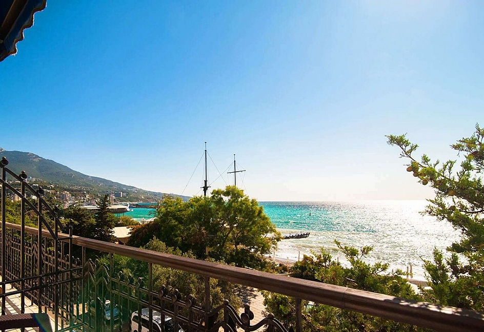 Расположение: Первая линия у моря (30 м до пляжа), 50 м до центра Ялты, 96 км до аэропорта Симферополь
