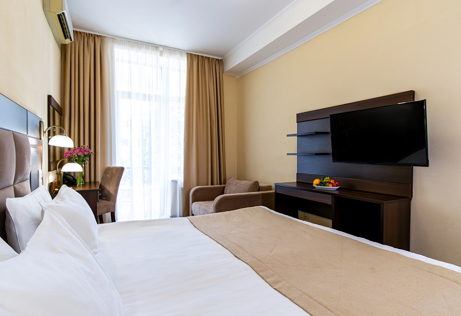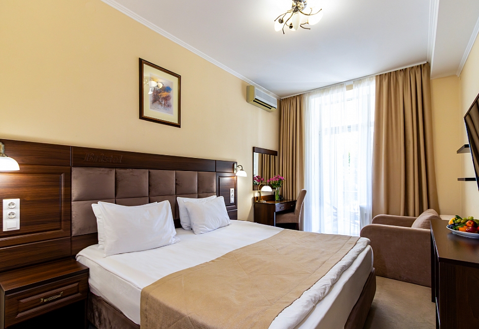 Отдыхала несколько дней в отеле Бристоль Ялта, выбор был сделан не случайно, так как расположение просто шикарное. Меньше минуты пешком и ты в начале набережной. Номера категории Стандарт небольшие по площади, но хорошо оснащены. Санузел большой и чистый. Балкон очень уютный с хорошим видом. Завтрак, шведский стол, разнообразный и вкусный. Помимо всего при отеле есть ресторан и пиццерия (по карточке гостя отеля СКИДКА 10%). Персонал приветливых и готовый помочь по любому вопросу. Есть бассейн.
