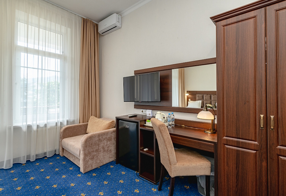 Пребывание в этом отеле было связано с моей работой.Понравилось само расположение,более центральное место тяжело найти.Всё устроило.Не возникло проблем при заселении и выезде.Квалифицированный персонал.