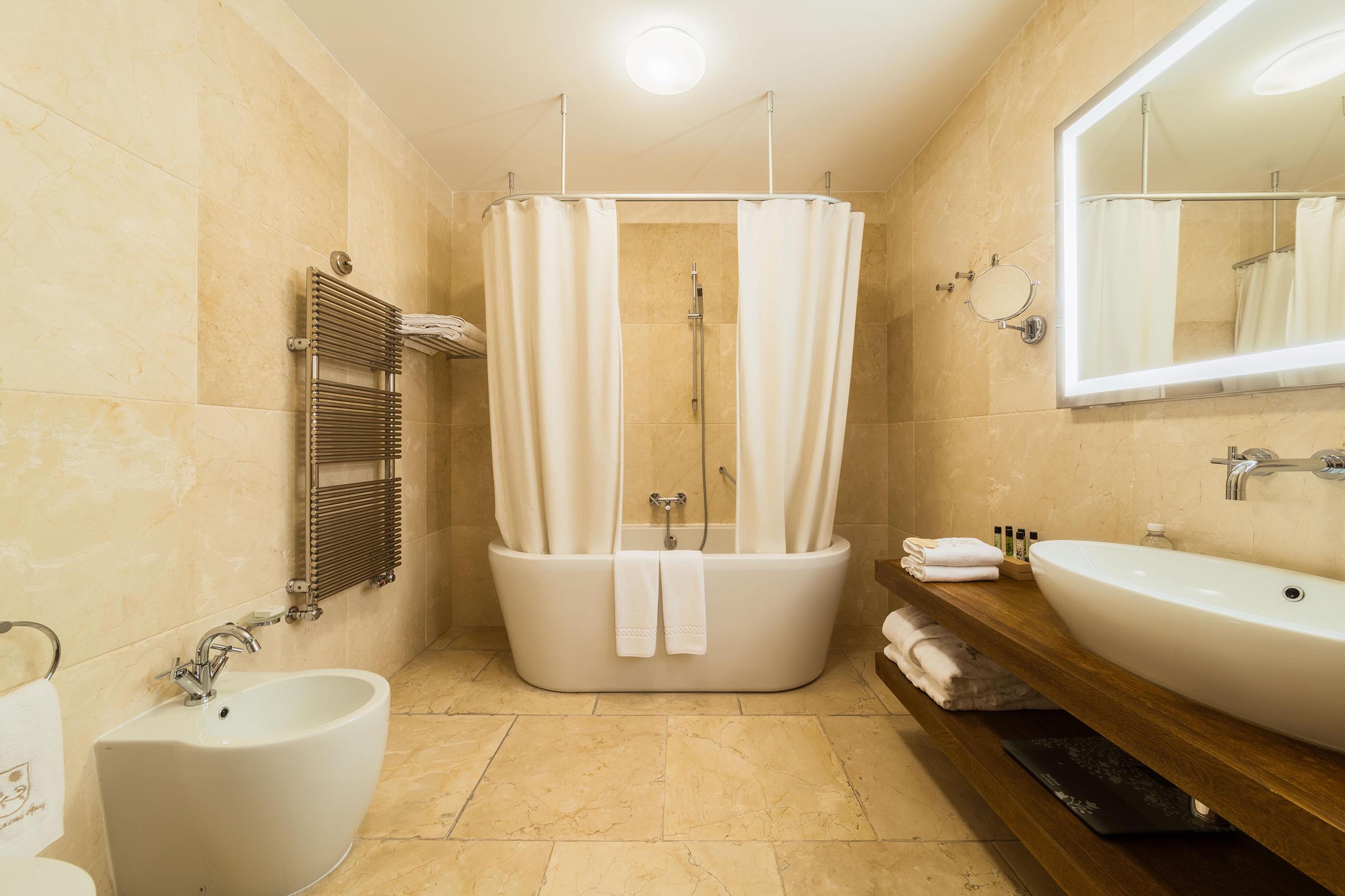 биде, с ванной, туалетные принадлежности, фен
