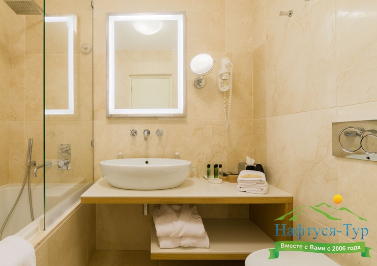 с ванной, туалетные принадлежности, фен