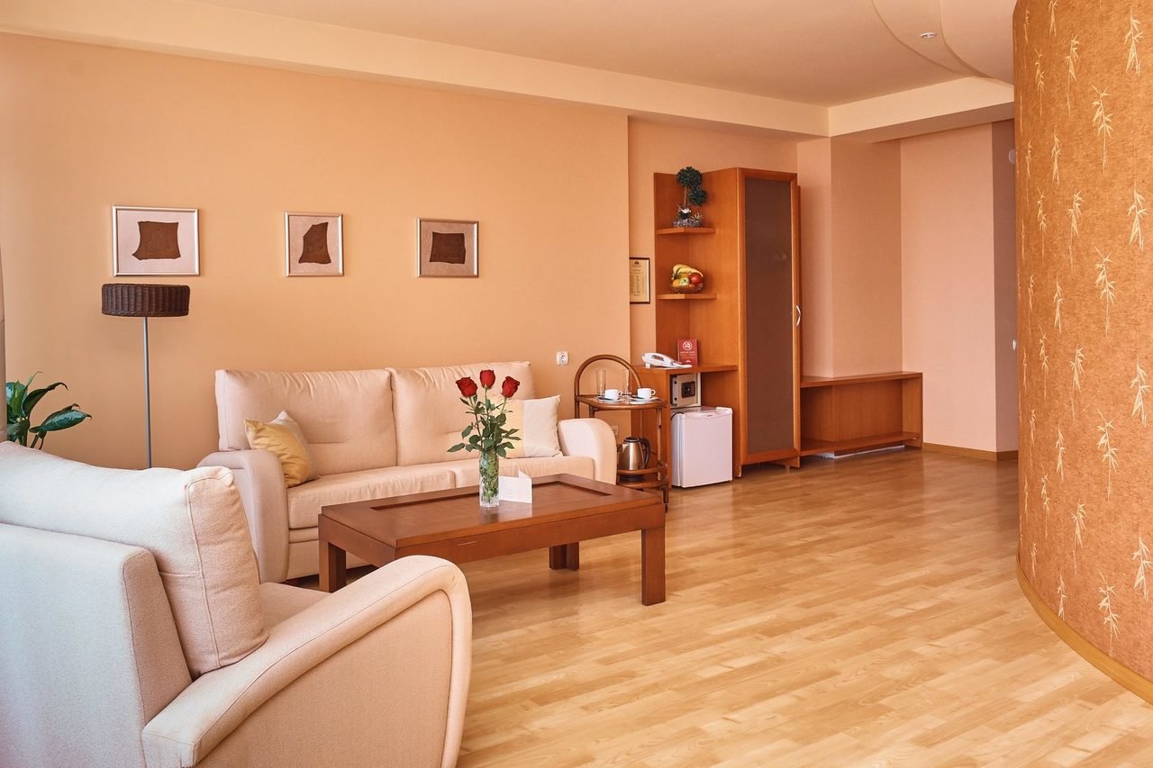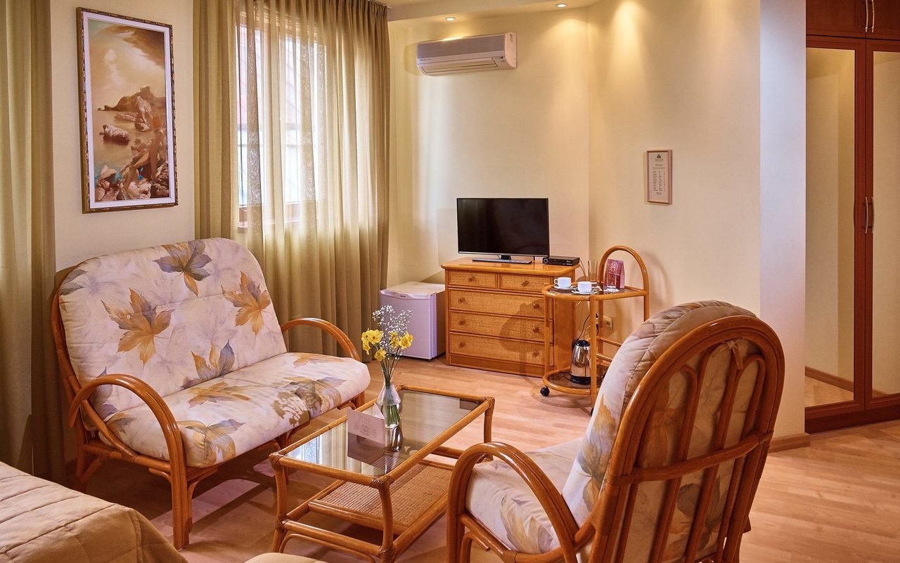 мини-бар,шкаф,балкон,журнальный стол,раскладной диван,сейф,телефон