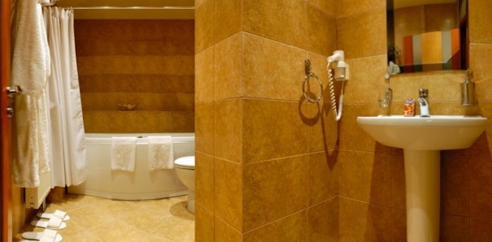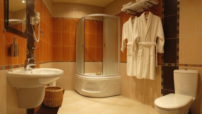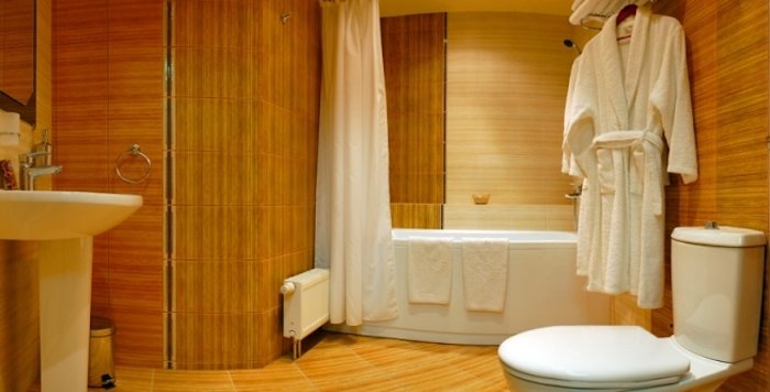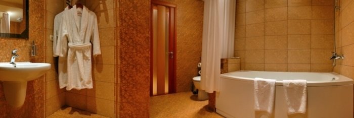 ванна,умывальник,туалет,фен,халат,набор полотенец