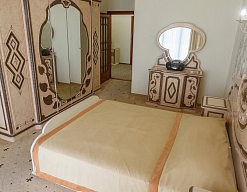 вешалка, диван, зеркало, кресло, кровать двуспальная, прикроватные тумбочки, стол, стулья, шкаф