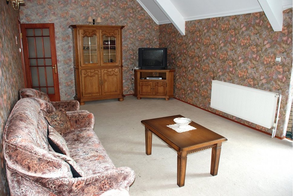 вешалка, диван, зеркало, кровати односпальные /одна двуспальная кровать, прикроватные тумбочки, стол, стулья, шкаф