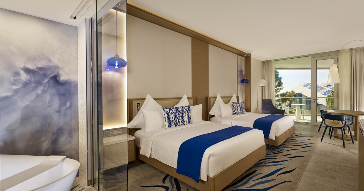 Лучшее место для развлечения каждого поколения, остров веселья и радости, - наш крытый аквапарк с фильтрованной морской водой. Водные аттракционы поднимут ваш уровень эндорфинов, когда вы сползете вниз по одному из 8 захватывающих дух скоростных слайдов, отпраздновав свою победу великолепным всплеском и погружением в бассейн с морской водой.