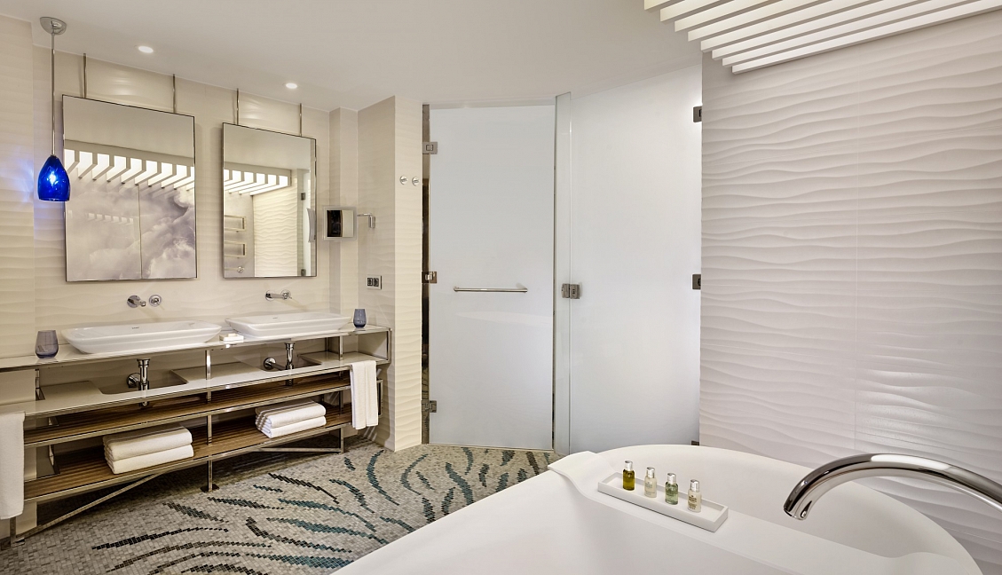 ванна,душевая кабина,косметический набор,фен,халат