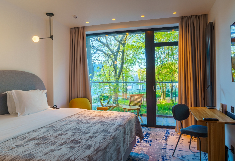 Отель Karmann’s hotel – Yantar Hall – дизайнерский отель, открытый в 2021 году, самый большой и современный в Светлогорске, уютно обосновавшийся посреди соснового леса. Панорамные окна позволяют ощущать свою причастность к целительной приморской природе.