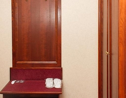 вешалка, зеркало, ковровое покрытие, кровать двуспальная, мягкий уголок, прикроватные тумбочки, стол, стулья, шкаф