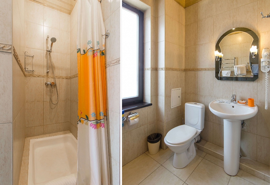 с душем, туалетные принадлежности, фен