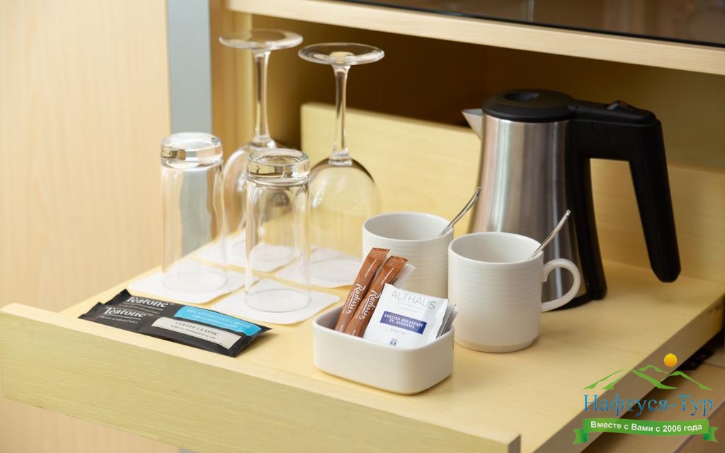 гладильная доска, кондиционер, сейф, телевизор ЖК, телефон, утюг, электрочайник