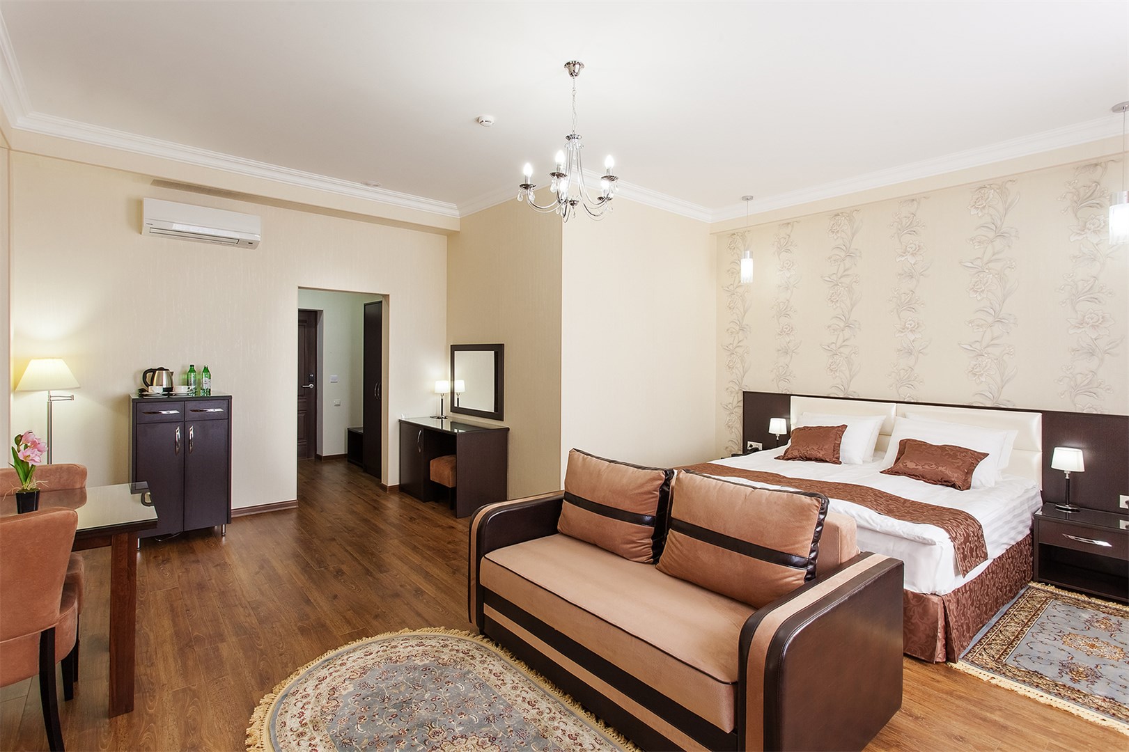 Самолетом до аэропорта г. Минеральные Воды, далее на маршрутном такси №11 до остановки «Вокзал», далее на электричке «Минеральные Воды - Кисловодск» до станции «Ессентуки», далее пройти пешком 1,2 км до отеля.