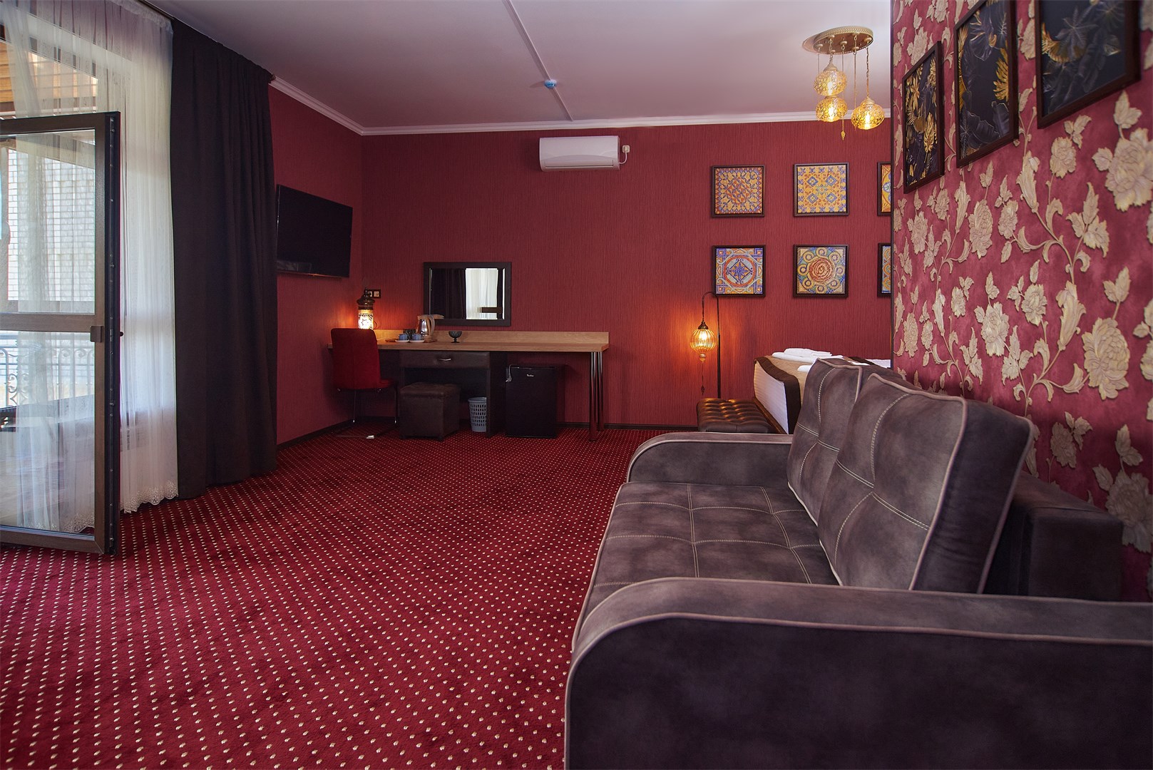 кондиционер, набор посуды, сейф, телевизор, холодильник, чайная станция, электрочайник
