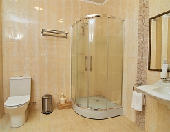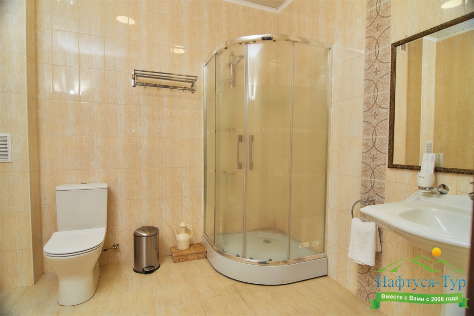 2 санузла, с ванной, с душевой кабиной, тапочки, туалетные принадлежности, фен, халат