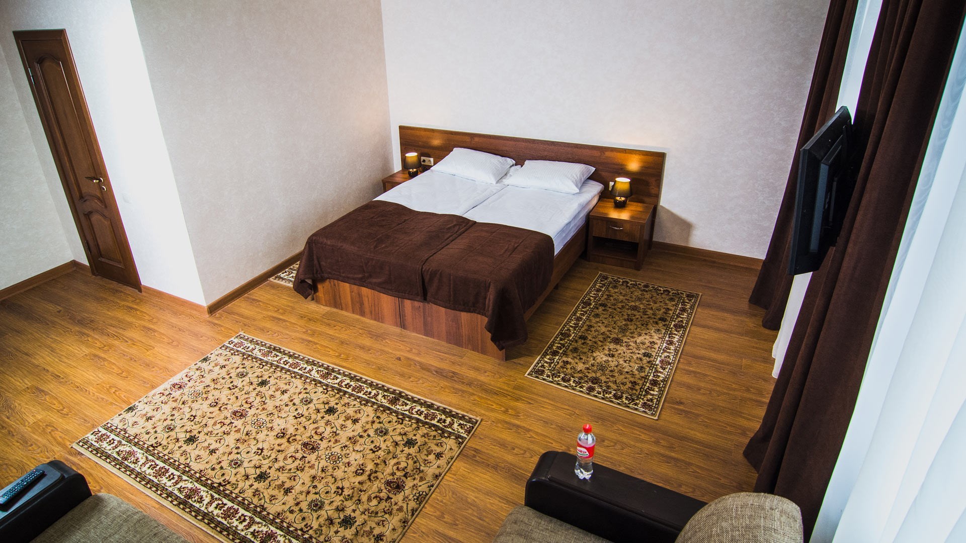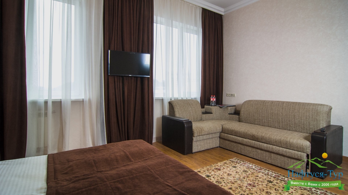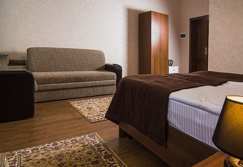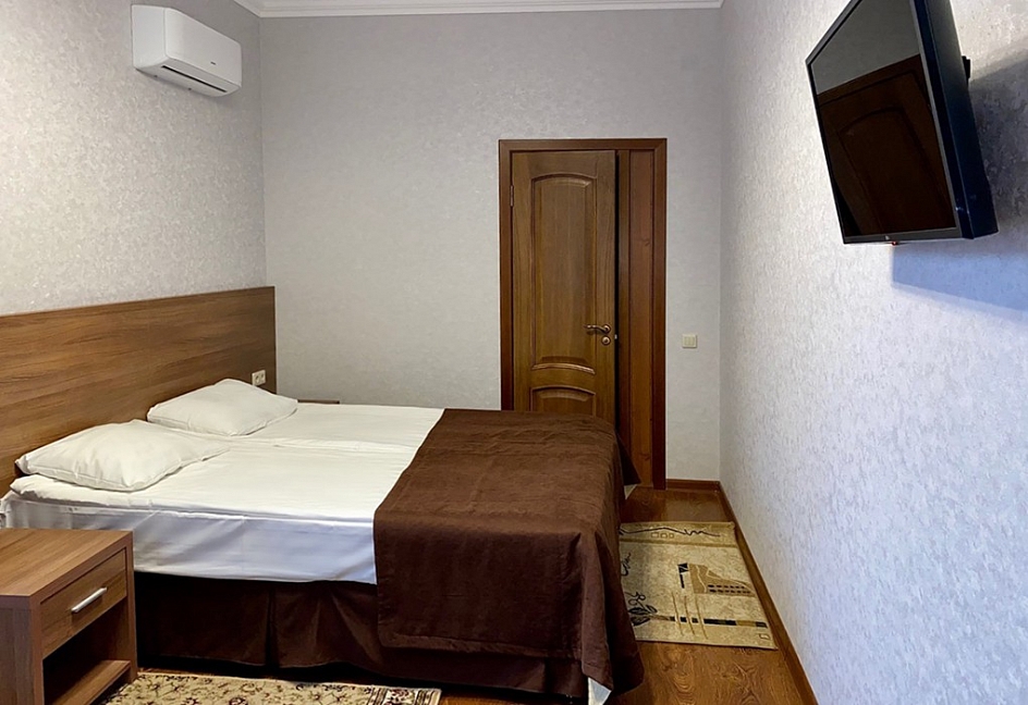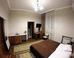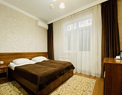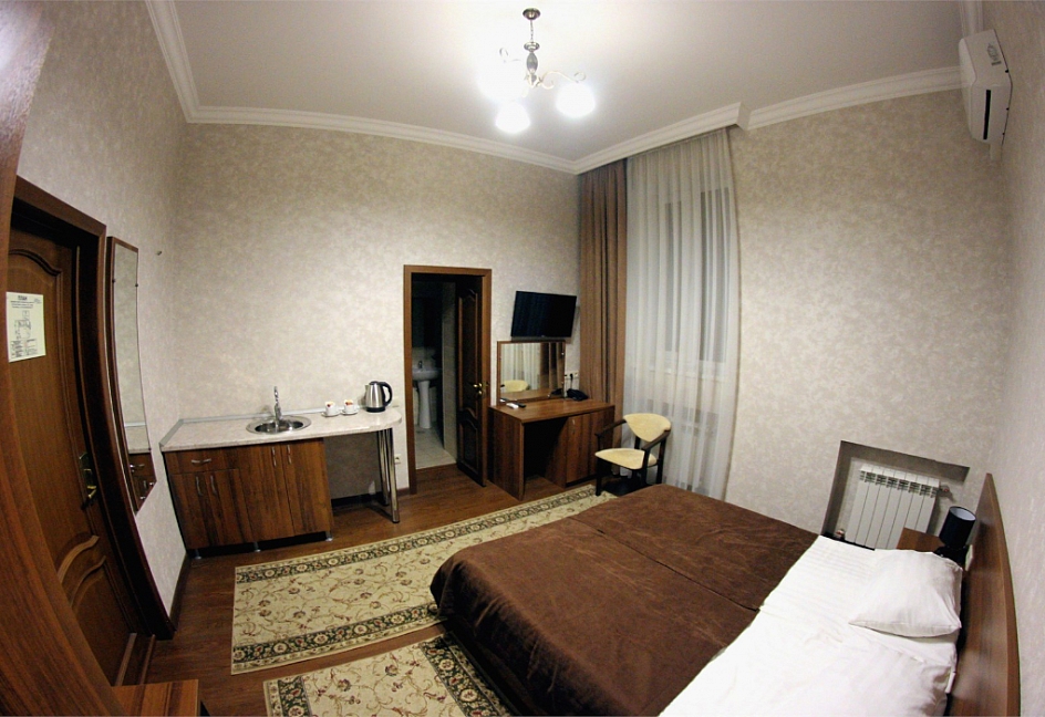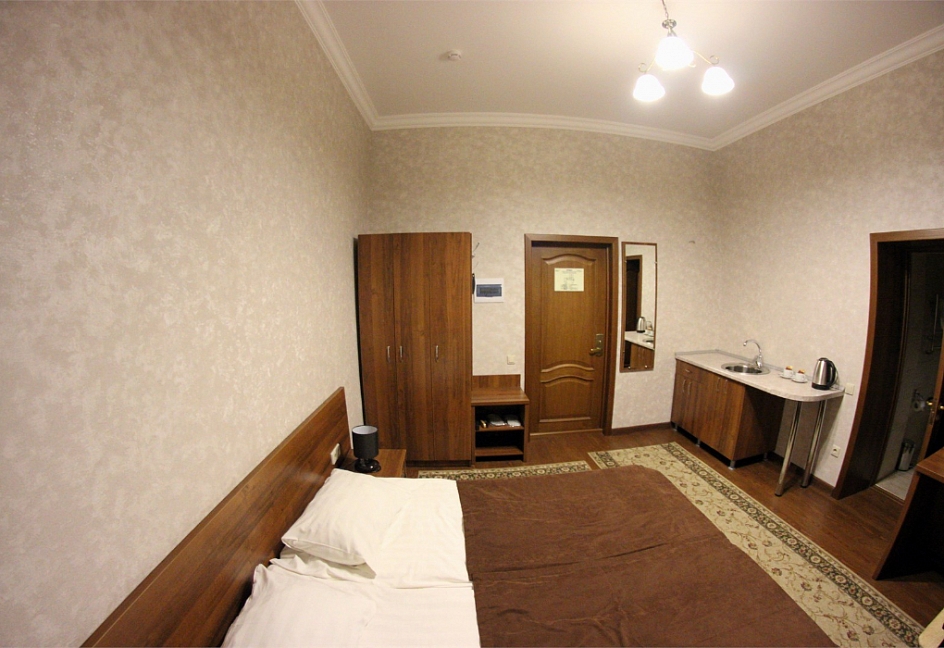 Расположение отличное, центр города. Парковка охраняемая на территории гостиницы. Уборка в номере каждый день. В номере кондиционер, холодильник, телевизор, чайник, нож, бокалы. Обслуживание и персонал на высшем уровне.