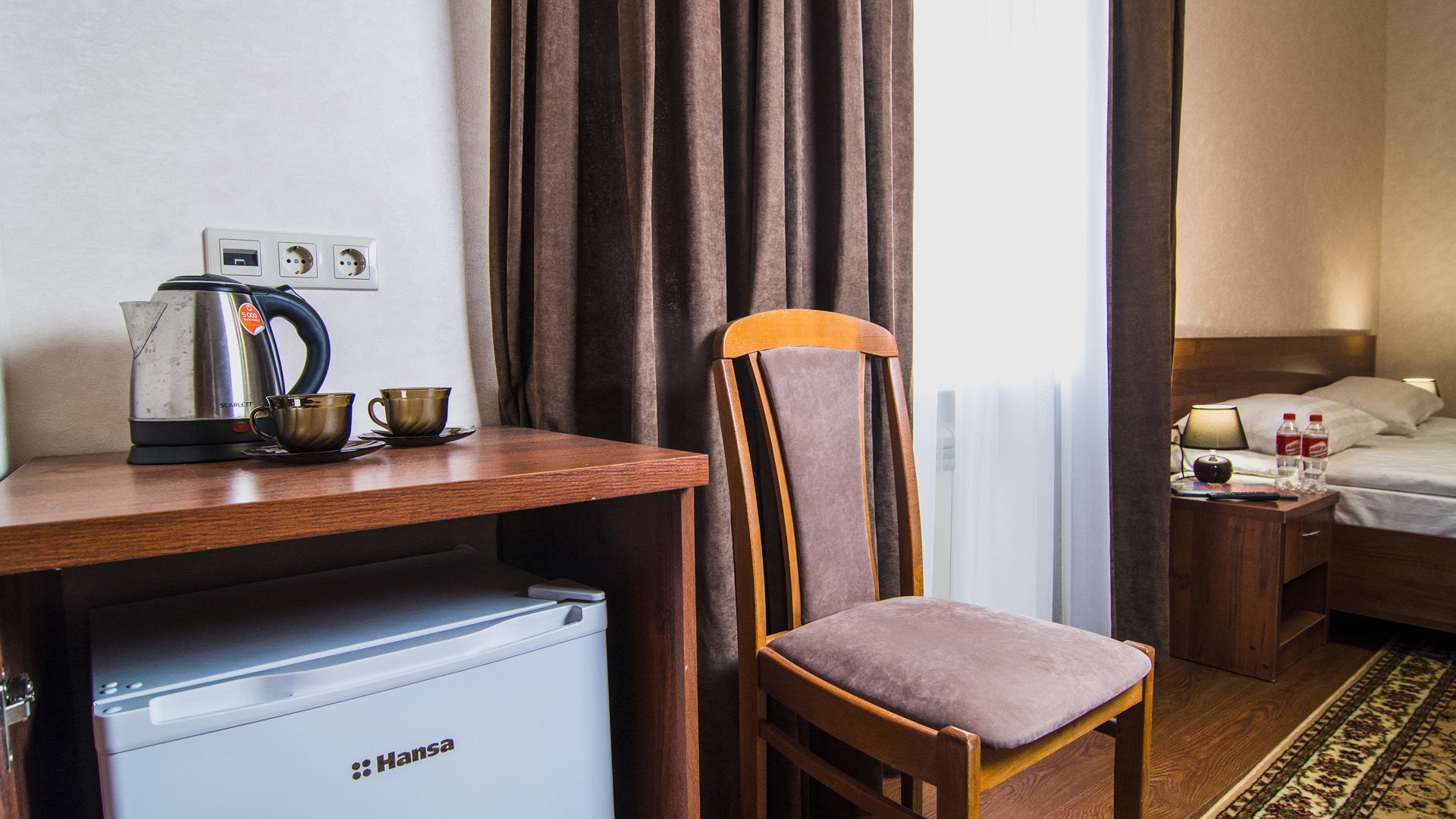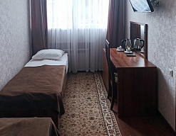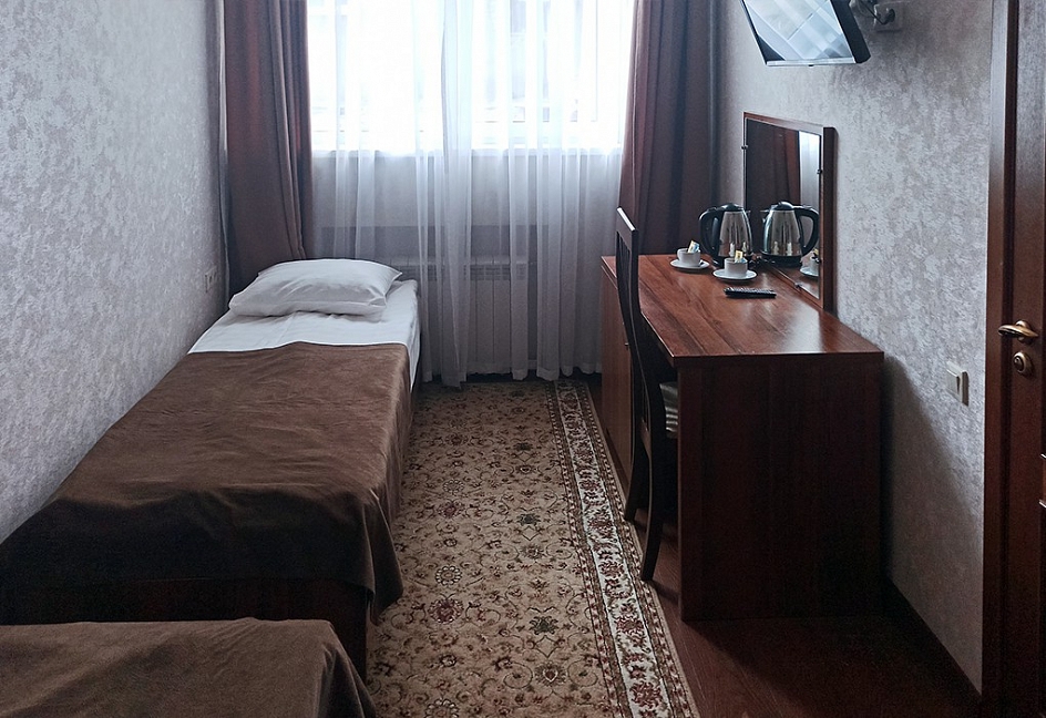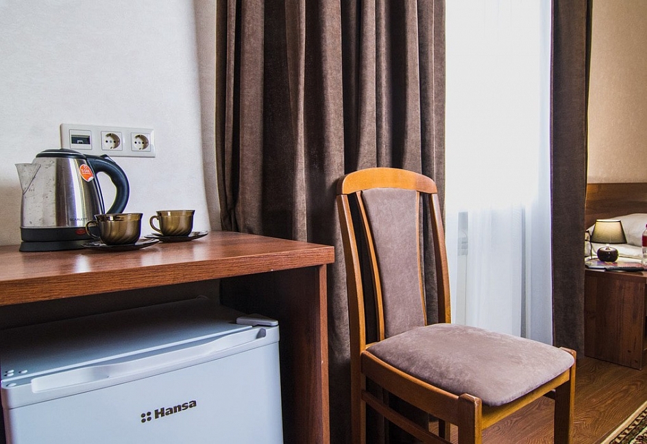 Месторасположение очень удобное. Номера чистые, с новым ремонтом, все красиво и удобно. Персонал приветливый. В номере есть фен, чайник, халат, посуда, чай, кофе и сахар.