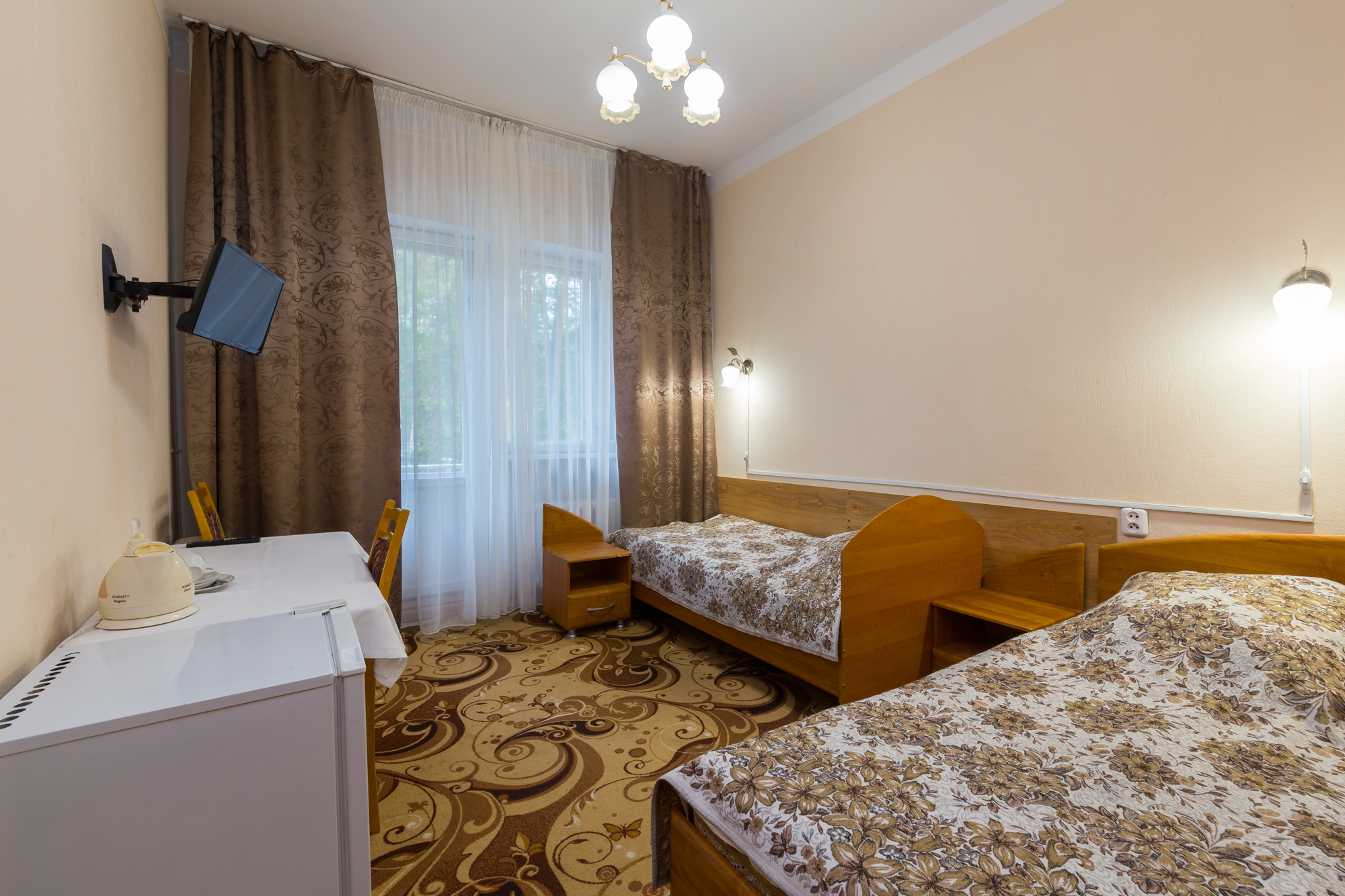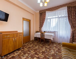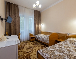 Старые номера, постельные принадлежности- матрасы, подушки, старый пахнущий ковролин,который уже не выветривается от многих пациентов. Питание очень не вкусное и однообразное....не квалифицированные повара , просто порча продуктов.