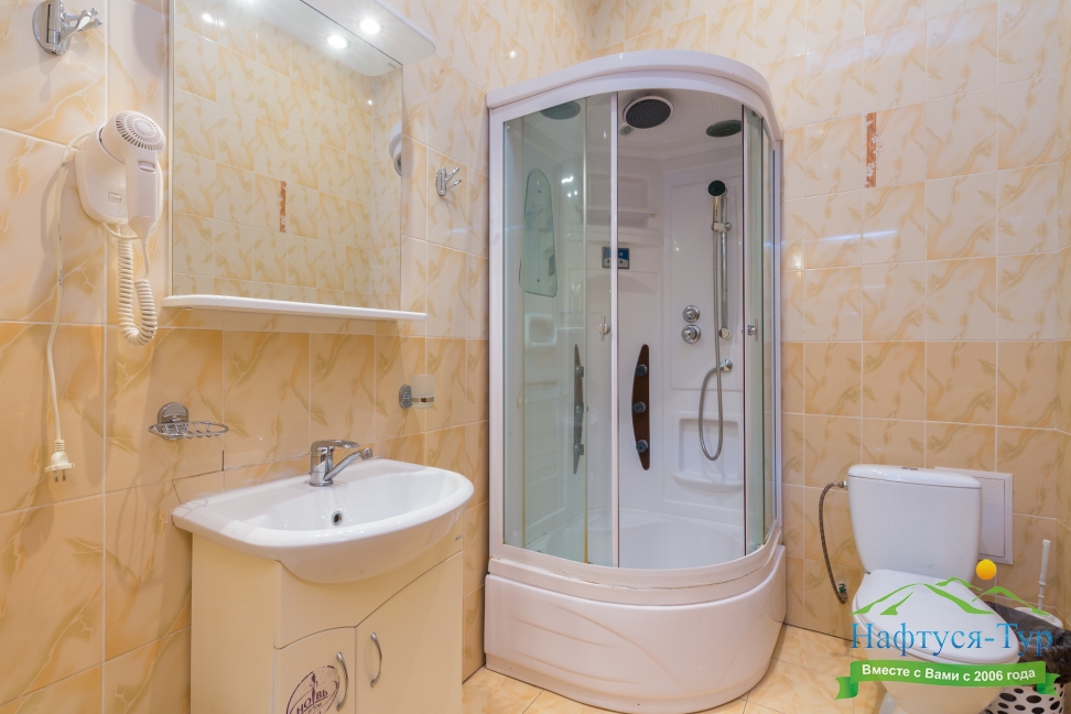 с душем, туалетные принадлежности, фен
