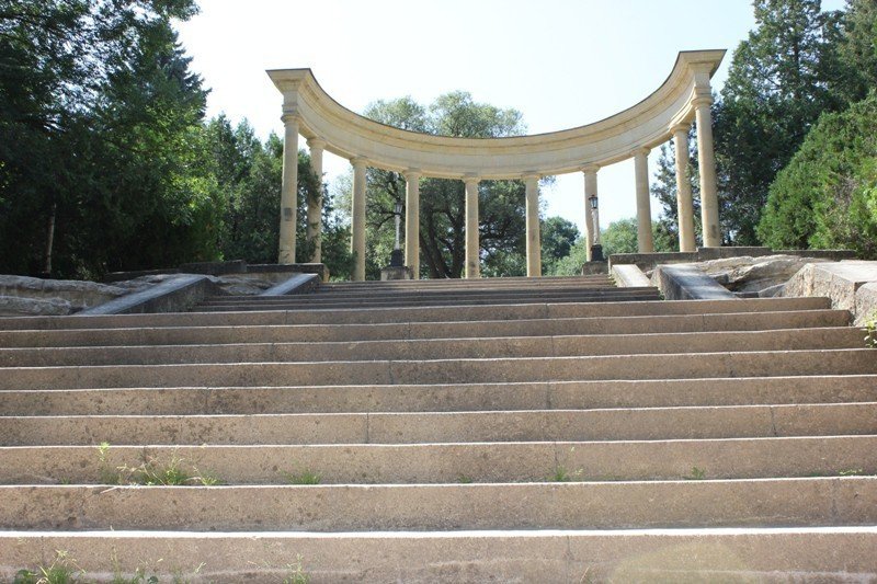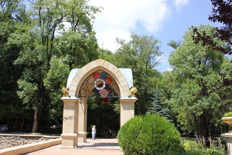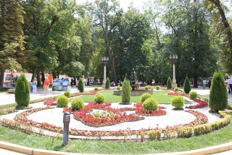 Ландшафтный дизайн территории. "Кисловодский" окружен зелеными парками и аллеями, создавая приятную атмосферу для прогулок и отдыха.
