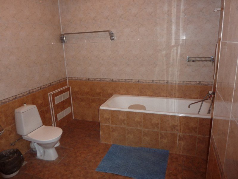 с ванной, тапочки, туалетные принадлежности, фен, халат