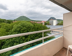 Рядом с санаторием прекрасная зона отдыха, озеро, площадка с тренажерами. Можно в любое время там позаниматься, любуясь красотой озера и горами. Гулять вокруг озера чудесно, все благоустроено, дорожки выложены, скамейки-качалки есть, интернет работает, кофе попить можно детская площадка, волейбольная, тапчаны для лета. Красота! Прекрасное место для отдыха! Очень все коасиво и удобео. И далее можно комфортно гулять до источника, дорожки, длинная лестница, которая приведет сразу к источнику. Для прогулок то, что надо. Но сначала ноги должны привыкнуть к нагрузкам! С осторожностью преодолевать расстояния.