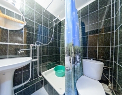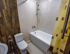 биде, с ванной/душем, тапочки, туалетные принадлежности, фен, халат
