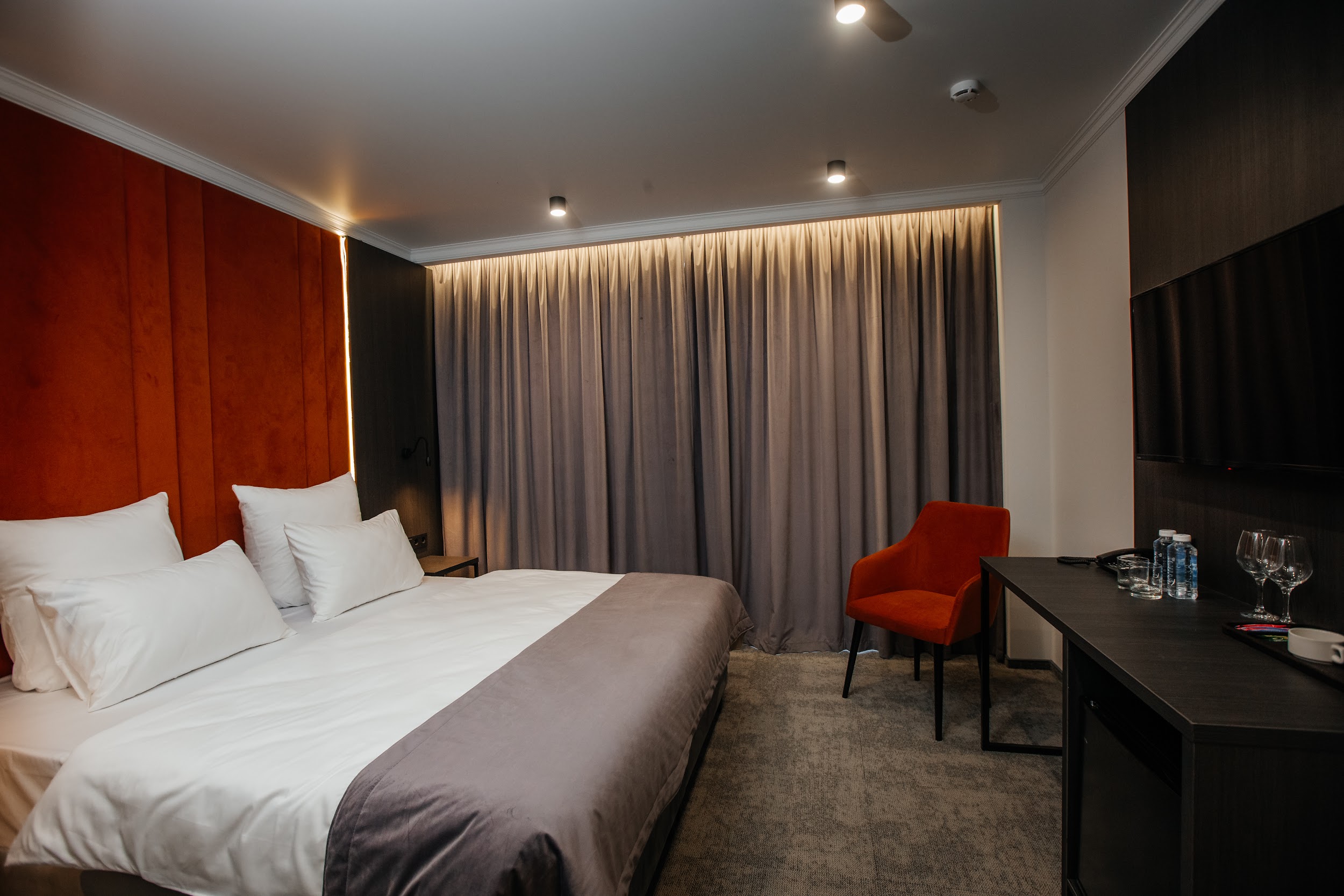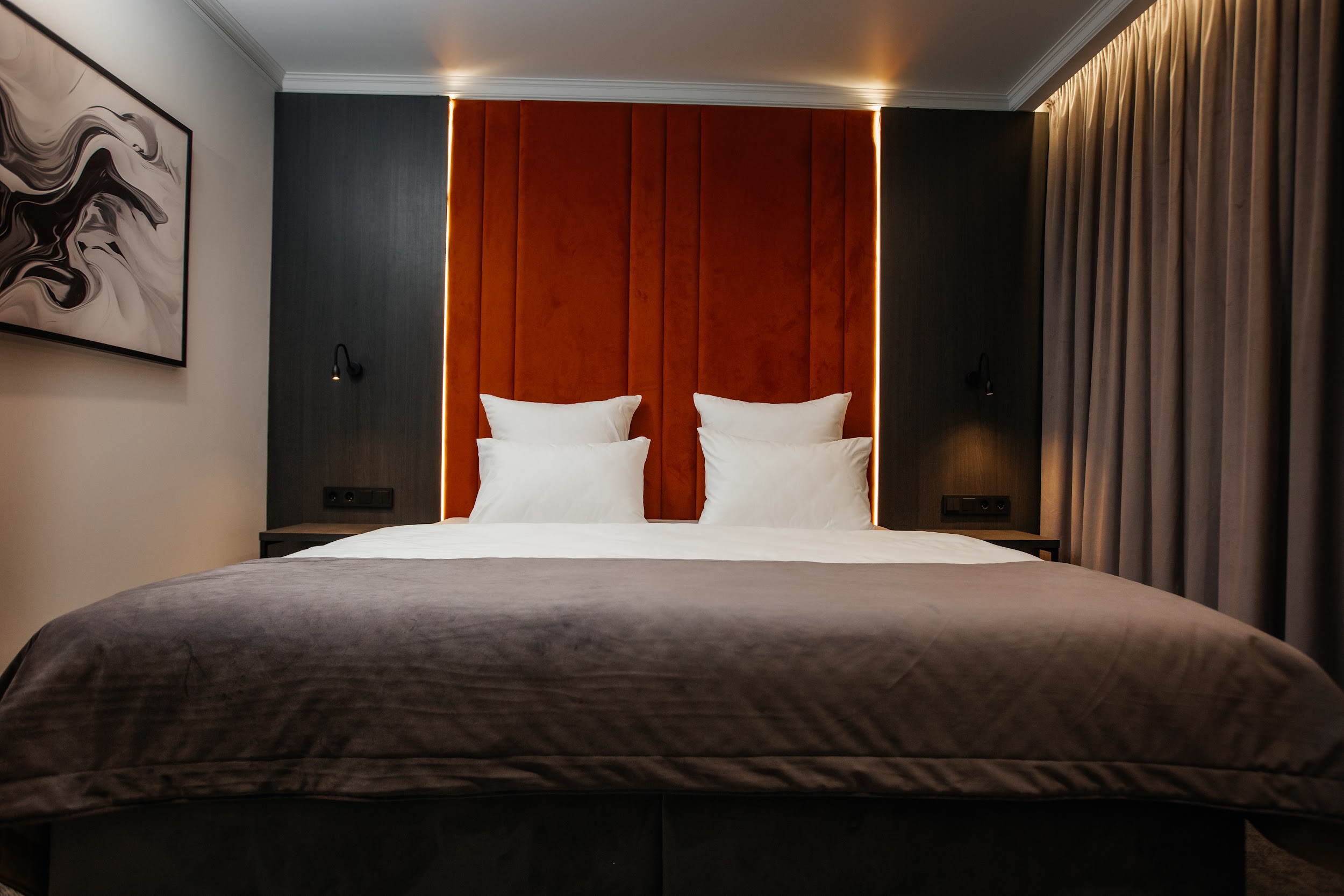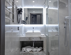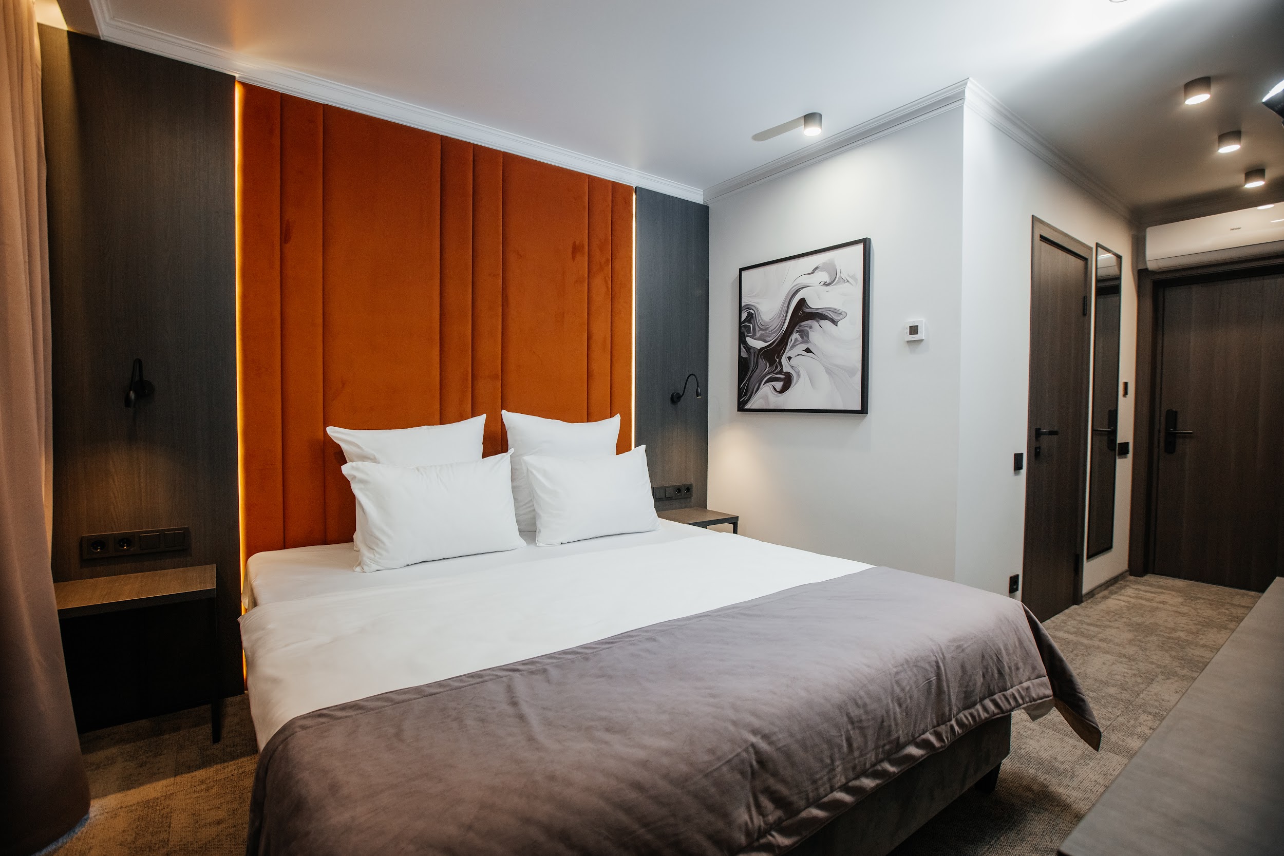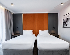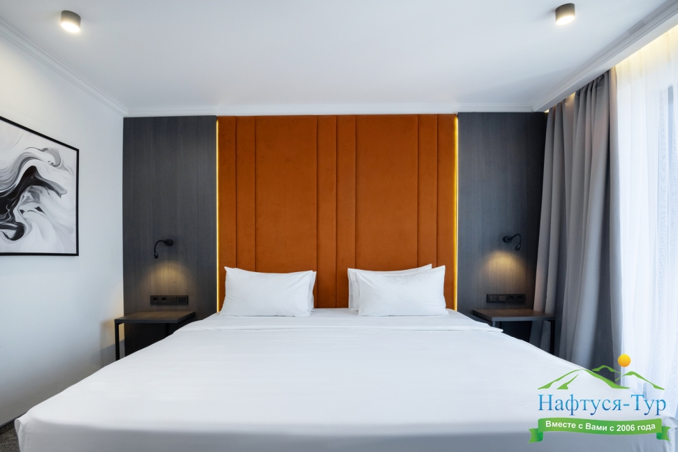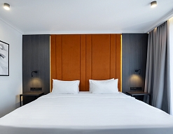 · Стильные, большие номера. Очень чисто. Удобный матрас, тишина и ночные шторы позволяют выспаться в любое время суток. Гель для душа, шампунь, мыло - каждый день при уборке.