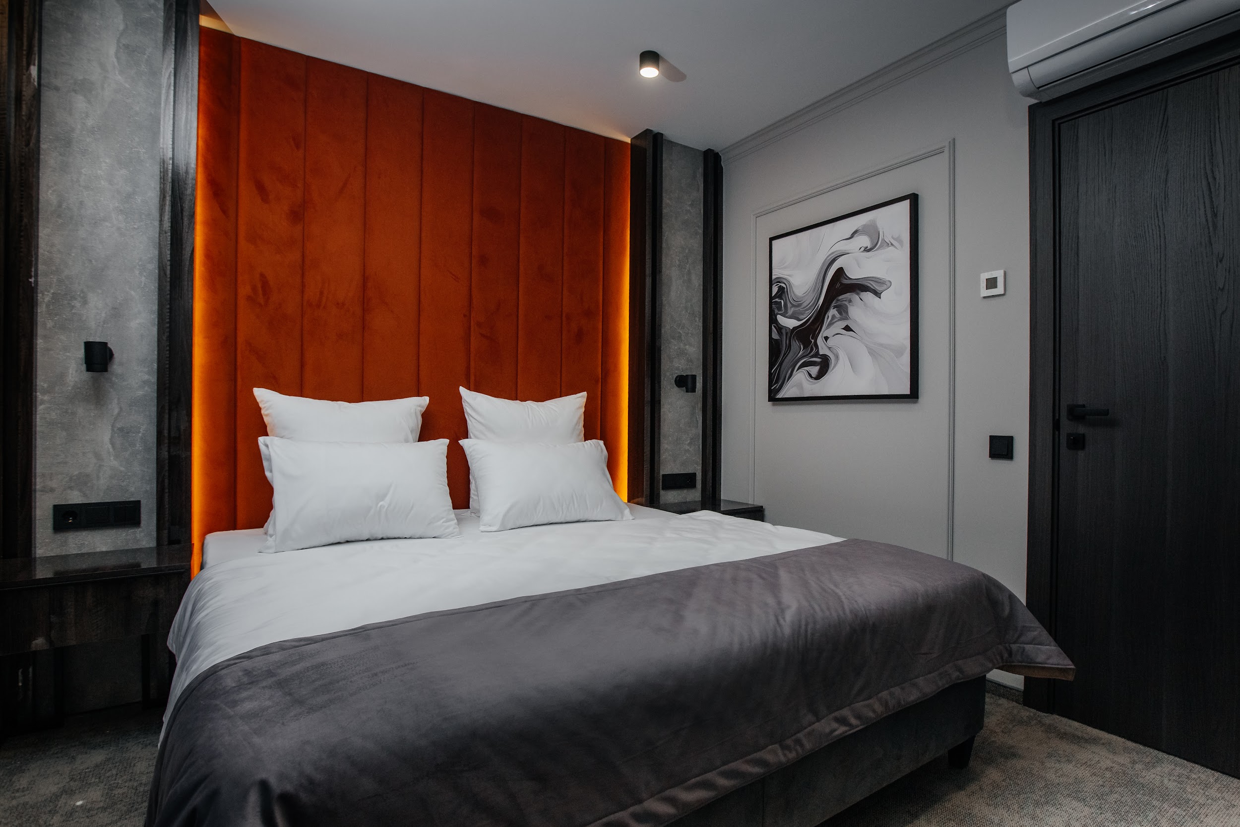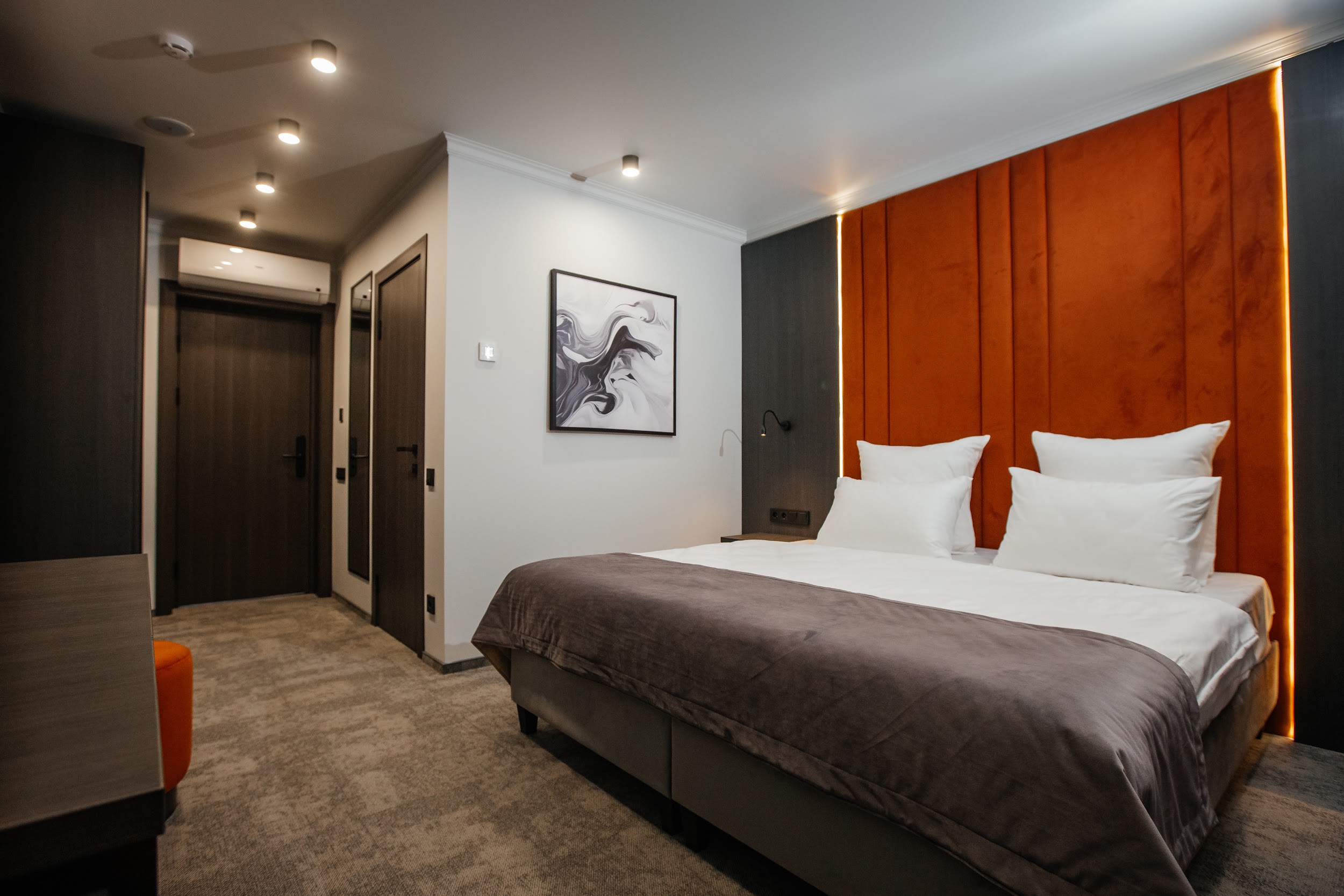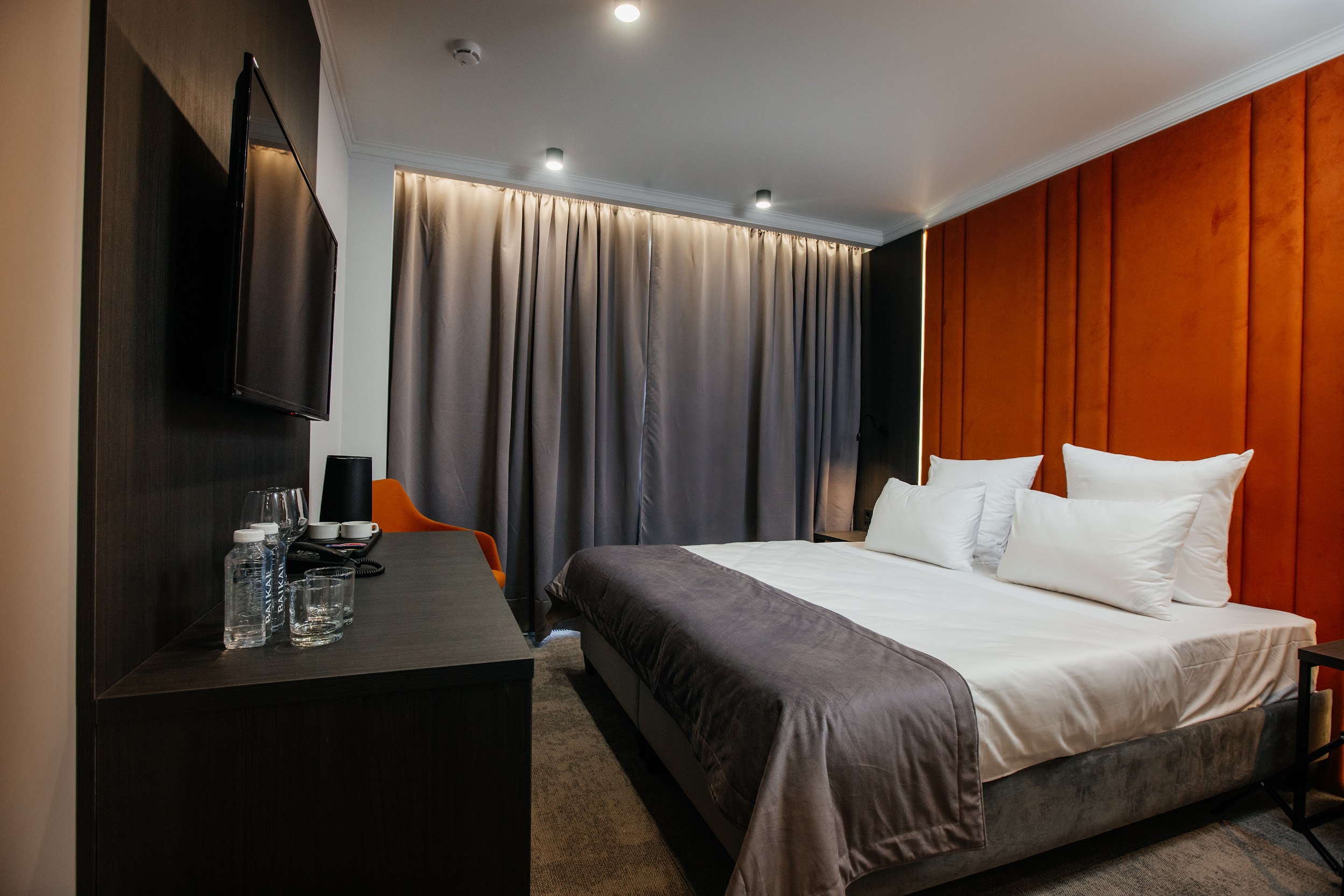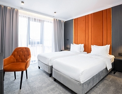· Стильные, большие номера. Очень чисто. Удобный матрас, тишина и ночные шторы позволяют выспаться в любое время суток. Гель для душа, шампунь, мыло - каждый день при уборке.
