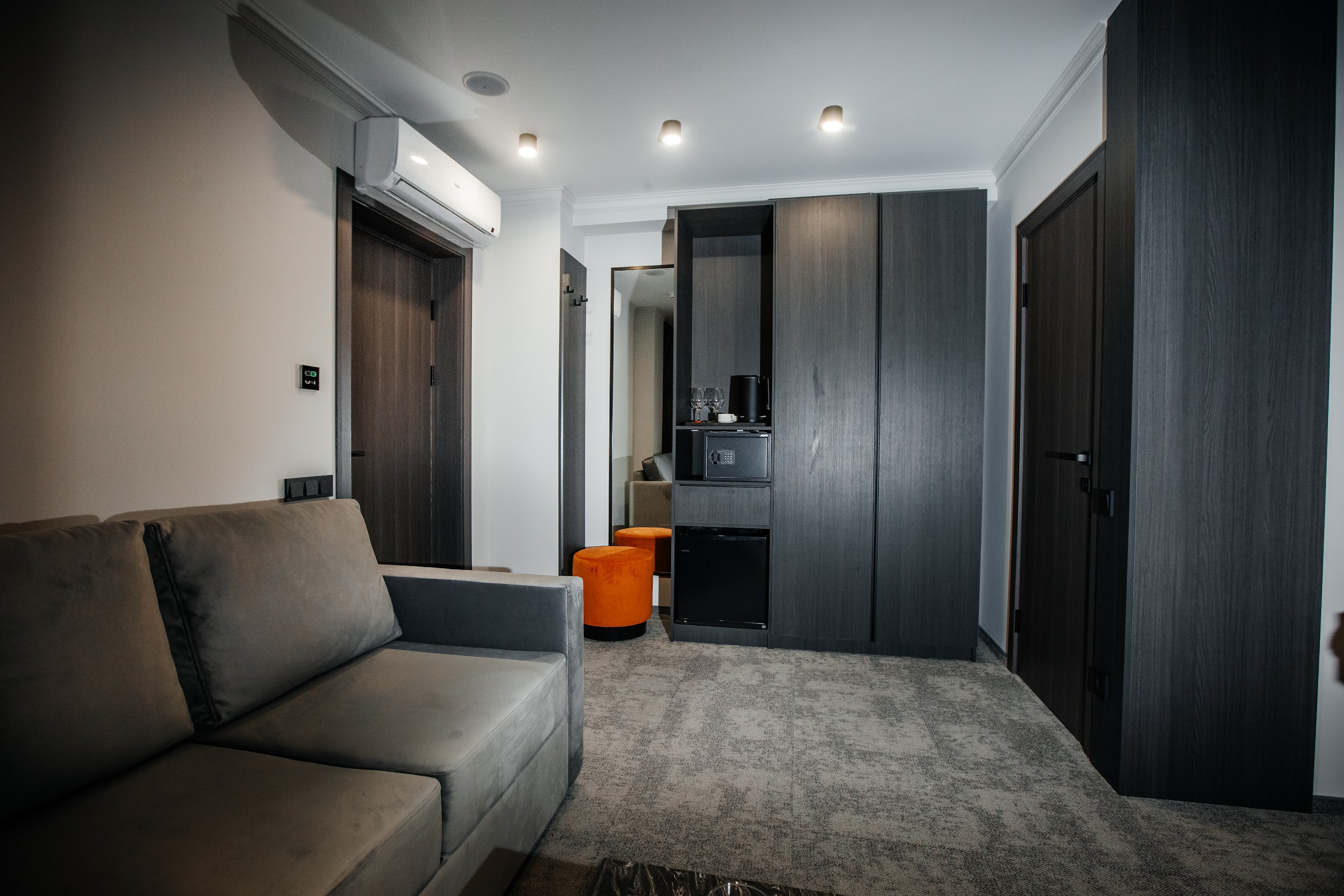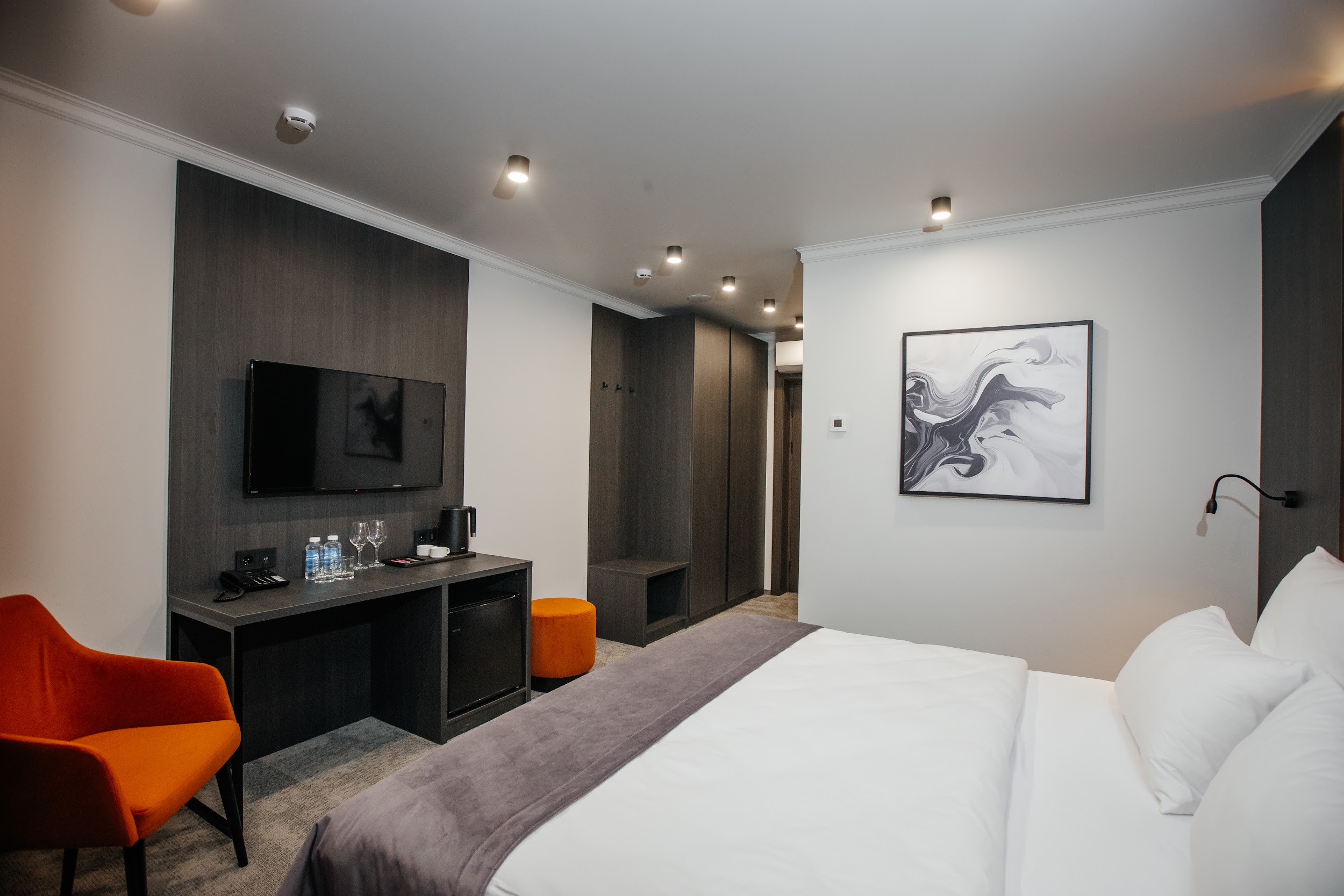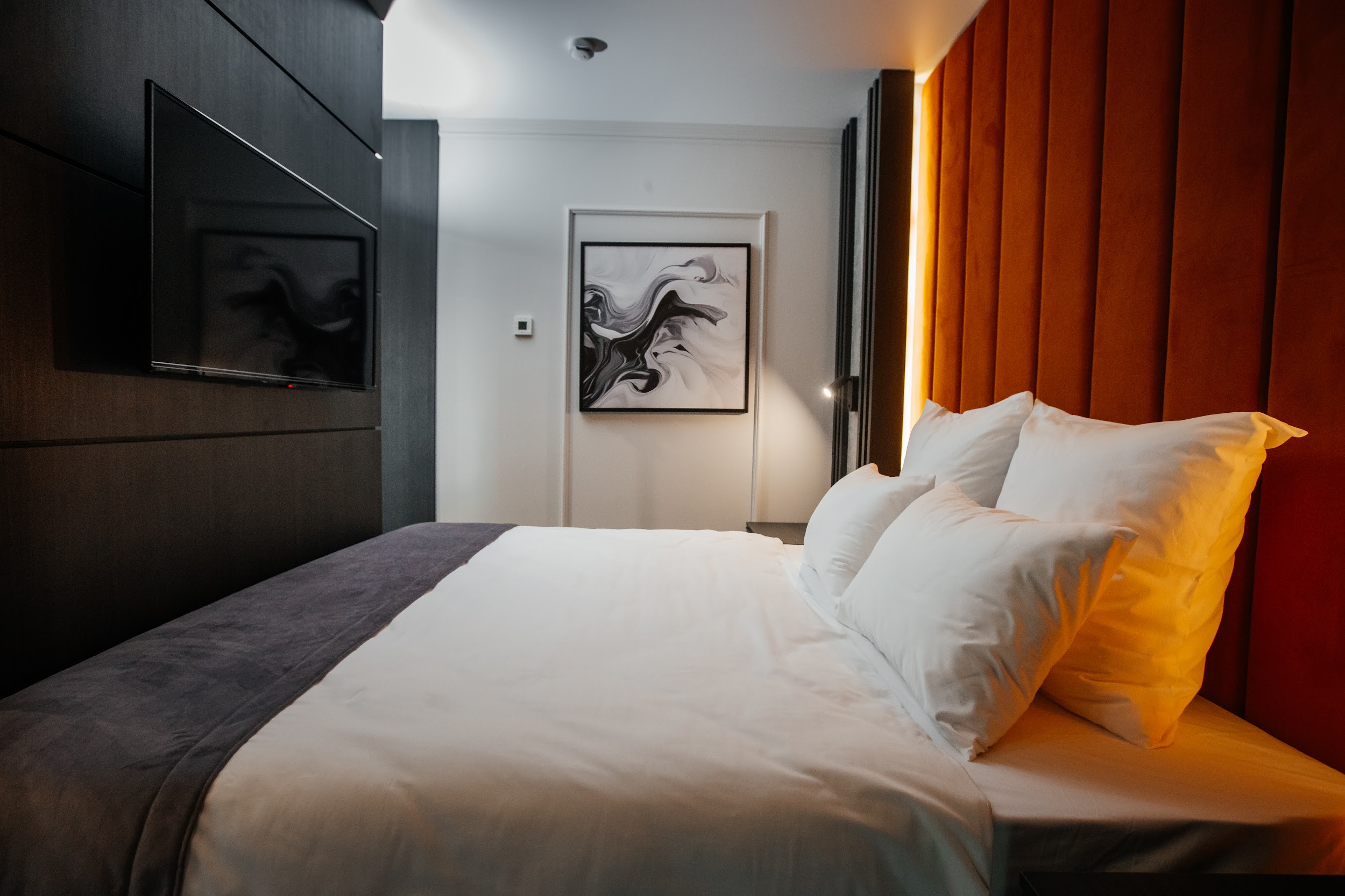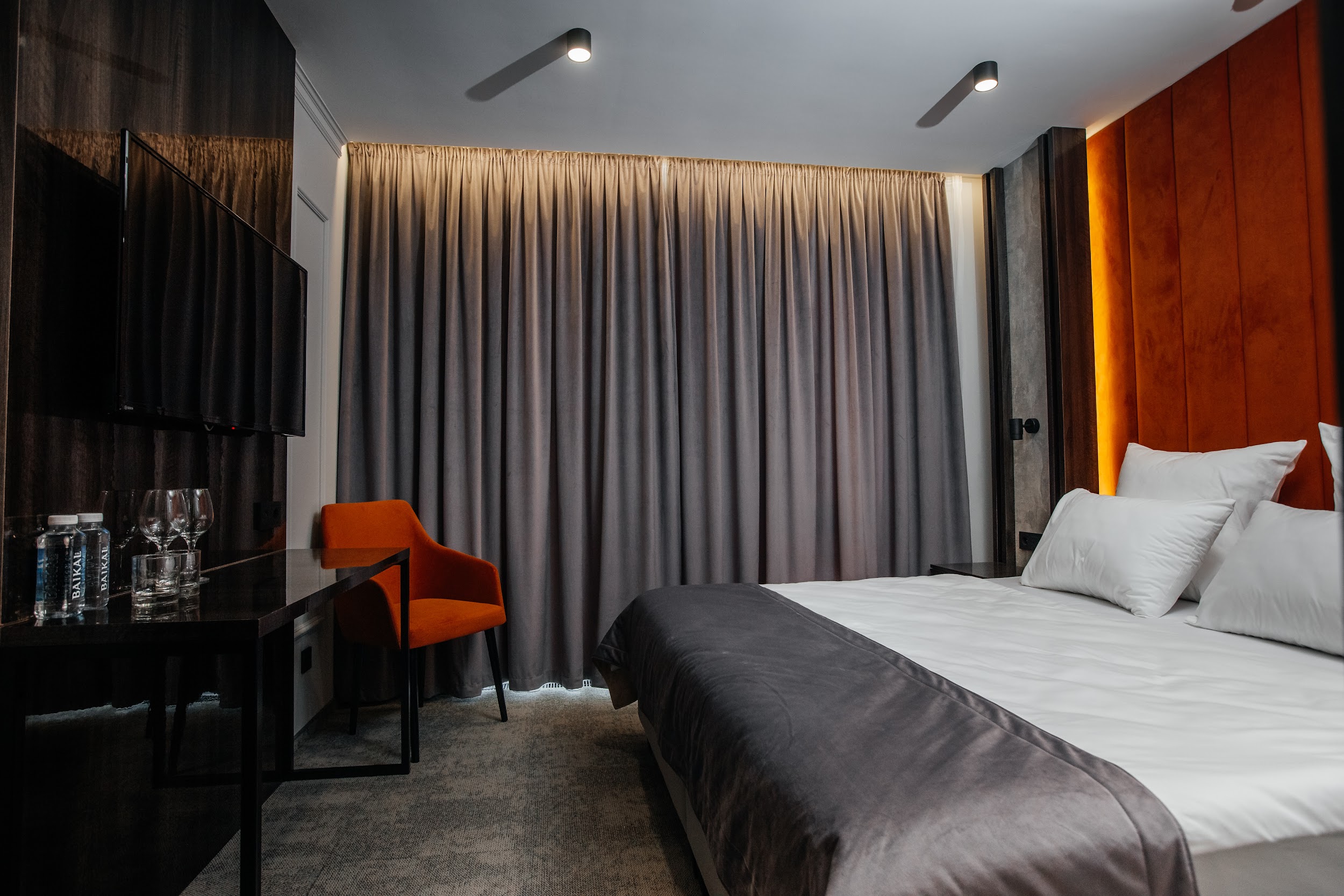 · Стильные, большие номера. Очень чисто. Удобный матрас, тишина и ночные шторы позволяют выспаться в любое время суток. Гель для душа, шампунь, мыло - каждый день при уборке.