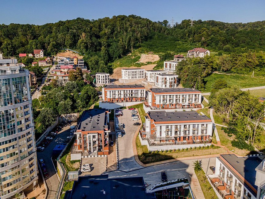 Поездом до ж/д вокзала Адлер, далее на автобусе №517,105,105а,105с,534,550,551,552,555 до остановки «Пансионат Южный», затем пройти 650 м до апартаментов.