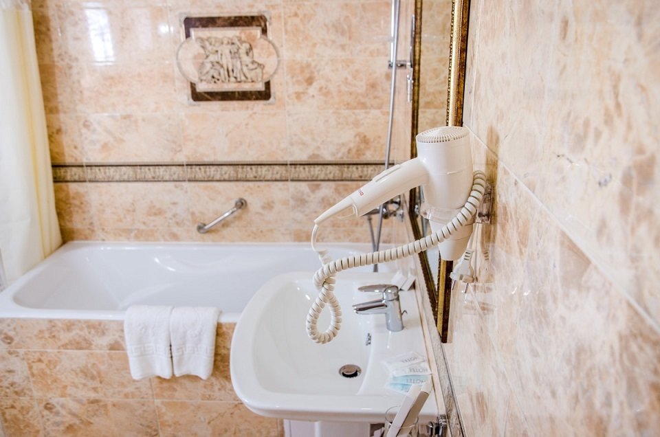 с ванной, с душем, туалетные принадлежности, фен