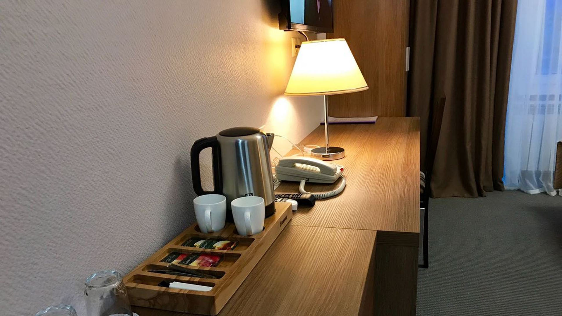 кровати односпальные /одна двуспальная кровать, прикроватные тумбочки, стол, стул, шкаф