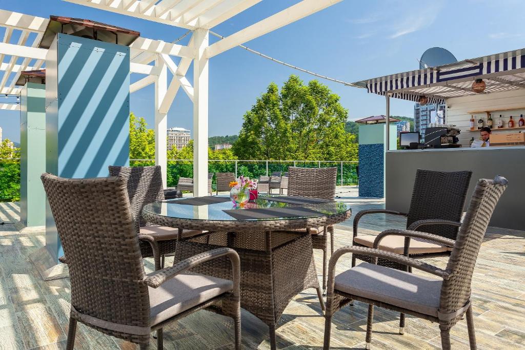 Расположение отеля идеально как для туристов, путешествующих на самолете, так и на поезде – 2,5 км до железнодорожного вокзала Адлер и 4,5 км до международного аэропорта Сочи.