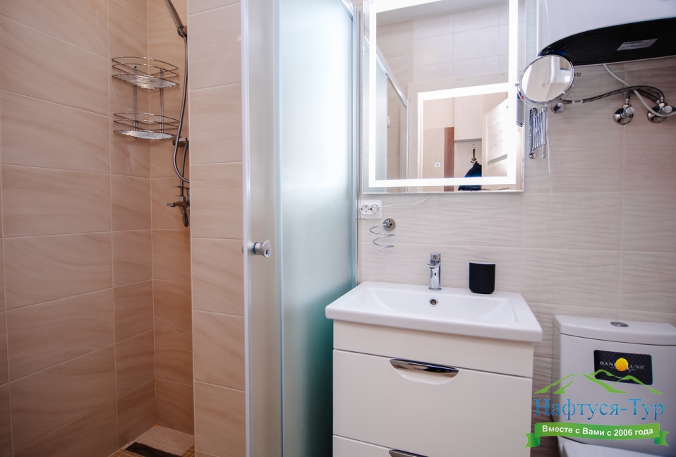 с душем, туалетные принадлежности, халат