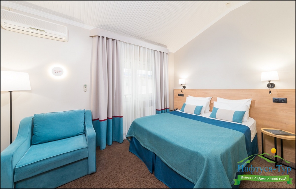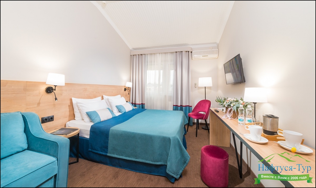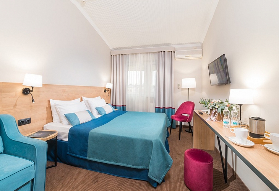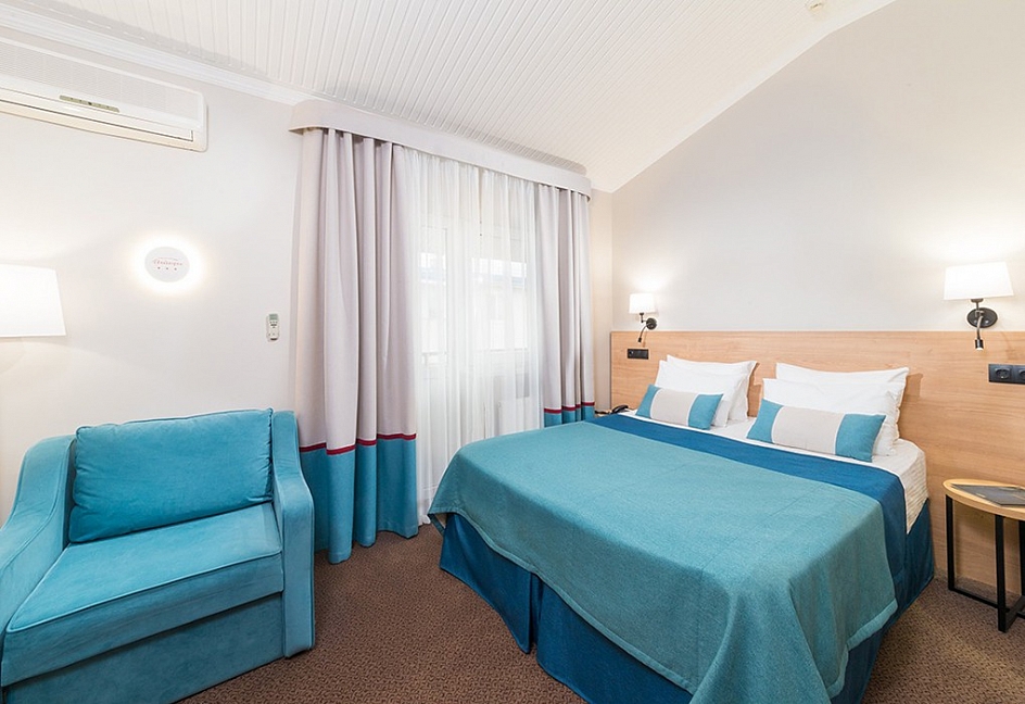 Приехав сюда понимаешь, что и в нашей стране можно отдохнуть хорошо и не дорого. Море недалеко, что для детей отлично и главное чистое.Мы проживали в номере студия. Уборка, смена белья - регулярно. Мы смотрели номера подешевле, они тоже не плохие. Отведали все сауны в отеле. Нормальное отношение всего персонала. Рады что есть такие заведения отличающиеся стабильностью.