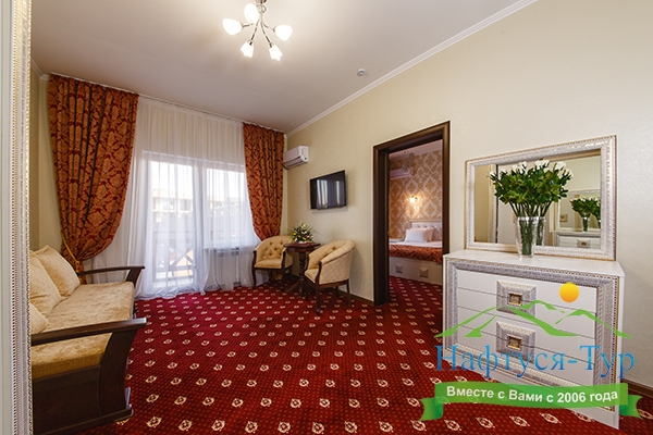 мини-холодильник, сейф, сплит-система, телевизор ЖК, телефон, чайный набор посуды