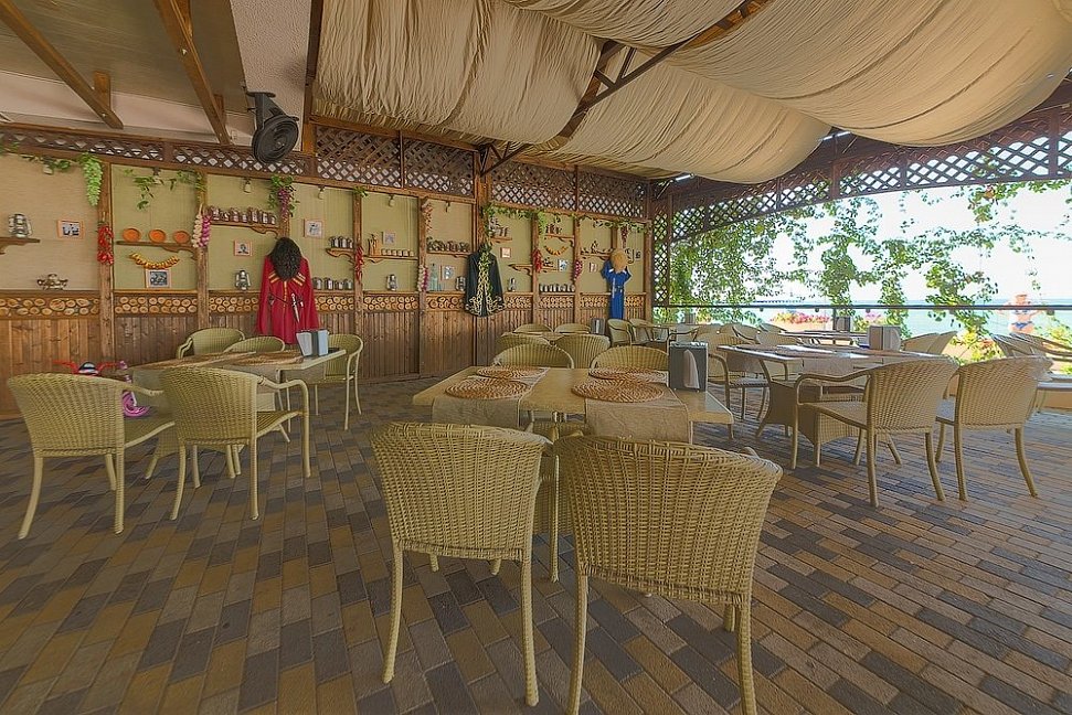 В стоимость путевки входят завтраки, организуемые в ресторане кавказской кухни «Черкесский аул», на самом берегу моря.