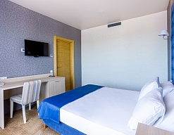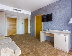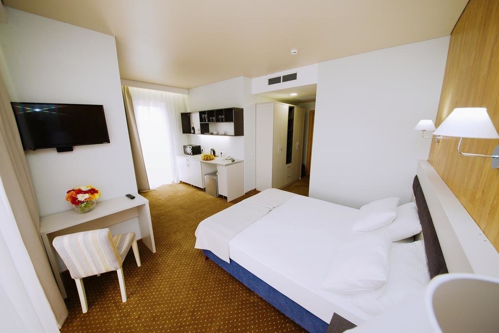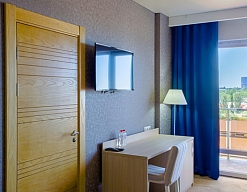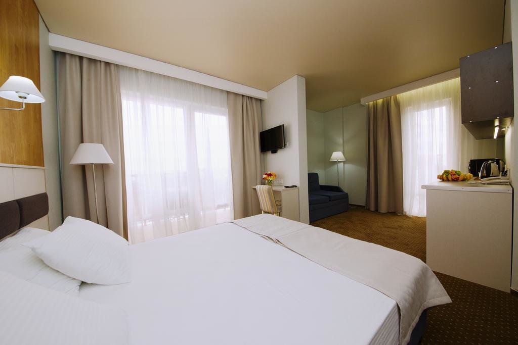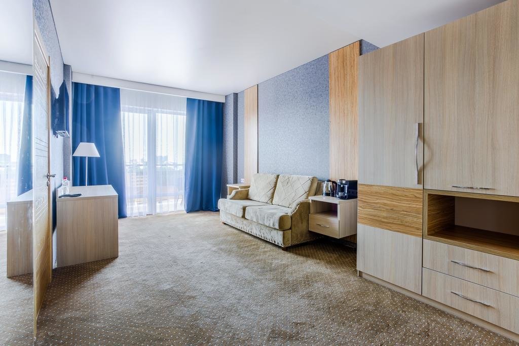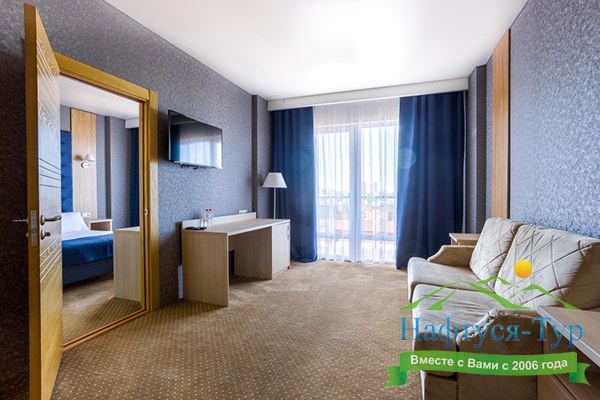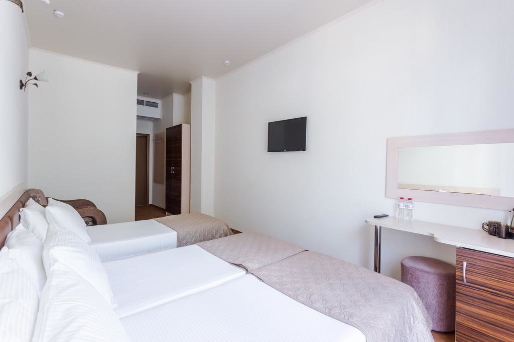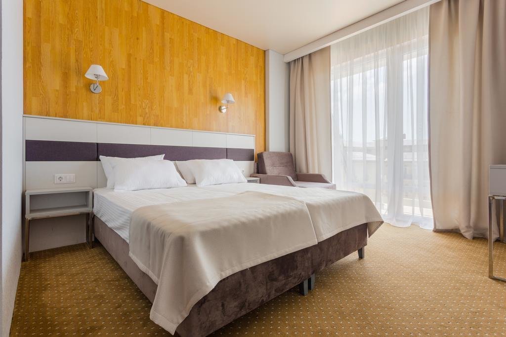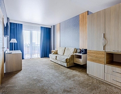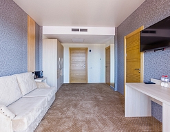 Отличный отель для отдыха в России. Приехали сюда в августе. Жили в 1-м корпусе. Номера в нём дороже, но цена соответствует качеству. В номере был сделан косметический ремонт, всё в хорошем состоянии, есть всякие мелочи.