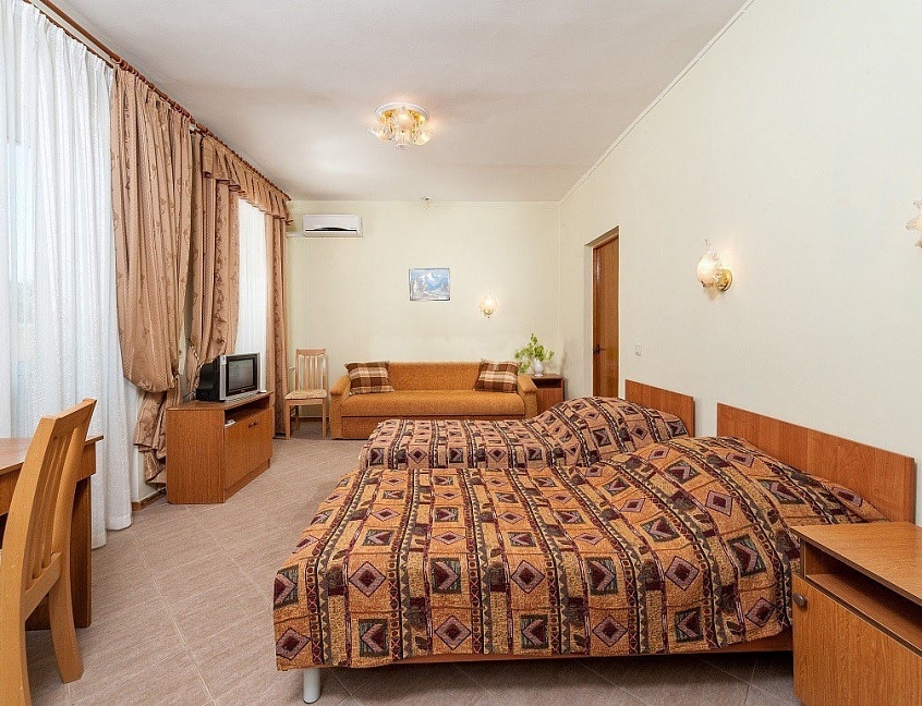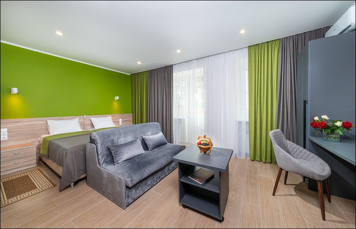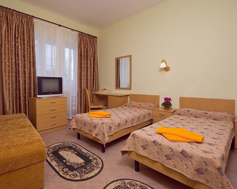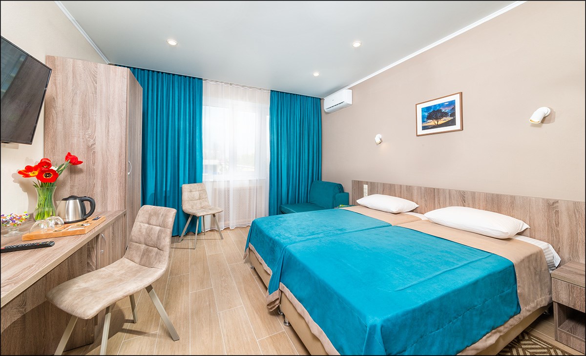 Разнообразие номеров: "Анапа" предлагает широкий выбор комфортабельных номеров различных категорий, от стандартных до просторных люксов.
