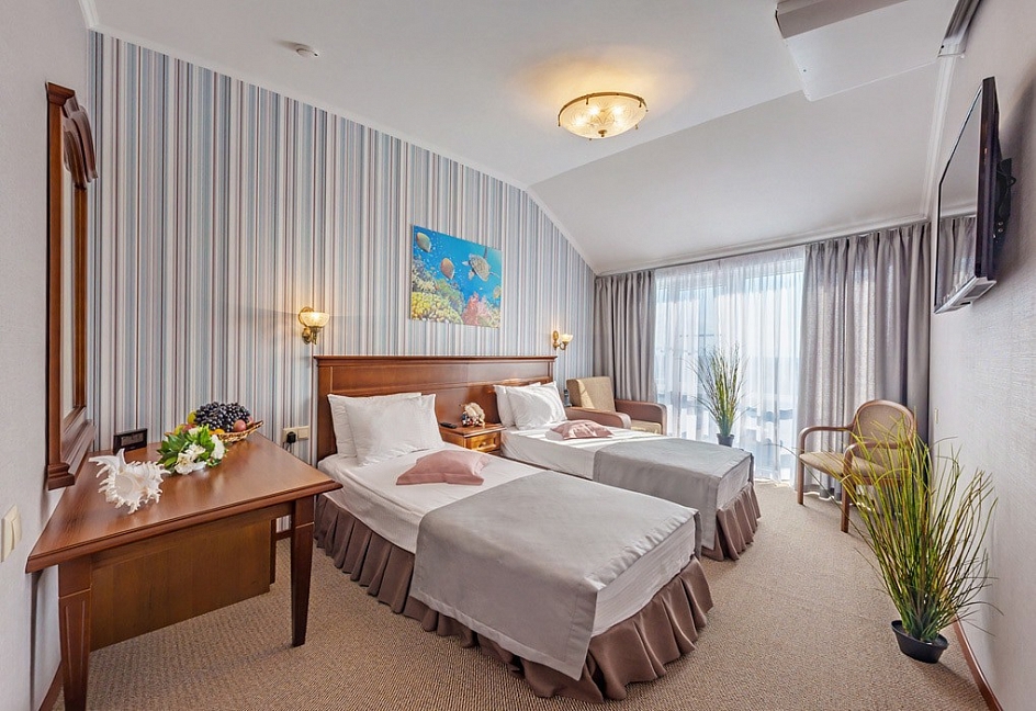 Комфортабельное размещение: Номера "Аквамарина" оформлены в современном стиле, обеспечивая уют и покой после насыщенного дня.