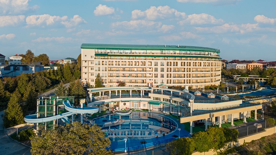Проживание, питание 3-разовое "шведский стол", лечение, пользование бассейнами, тренажёрным залом, спортплощадкой, услугами детского игрового клуба, автостоянкой., пользование оборудованным пляжем (в летний период)