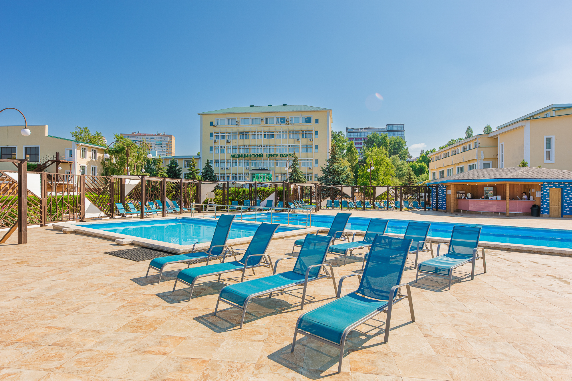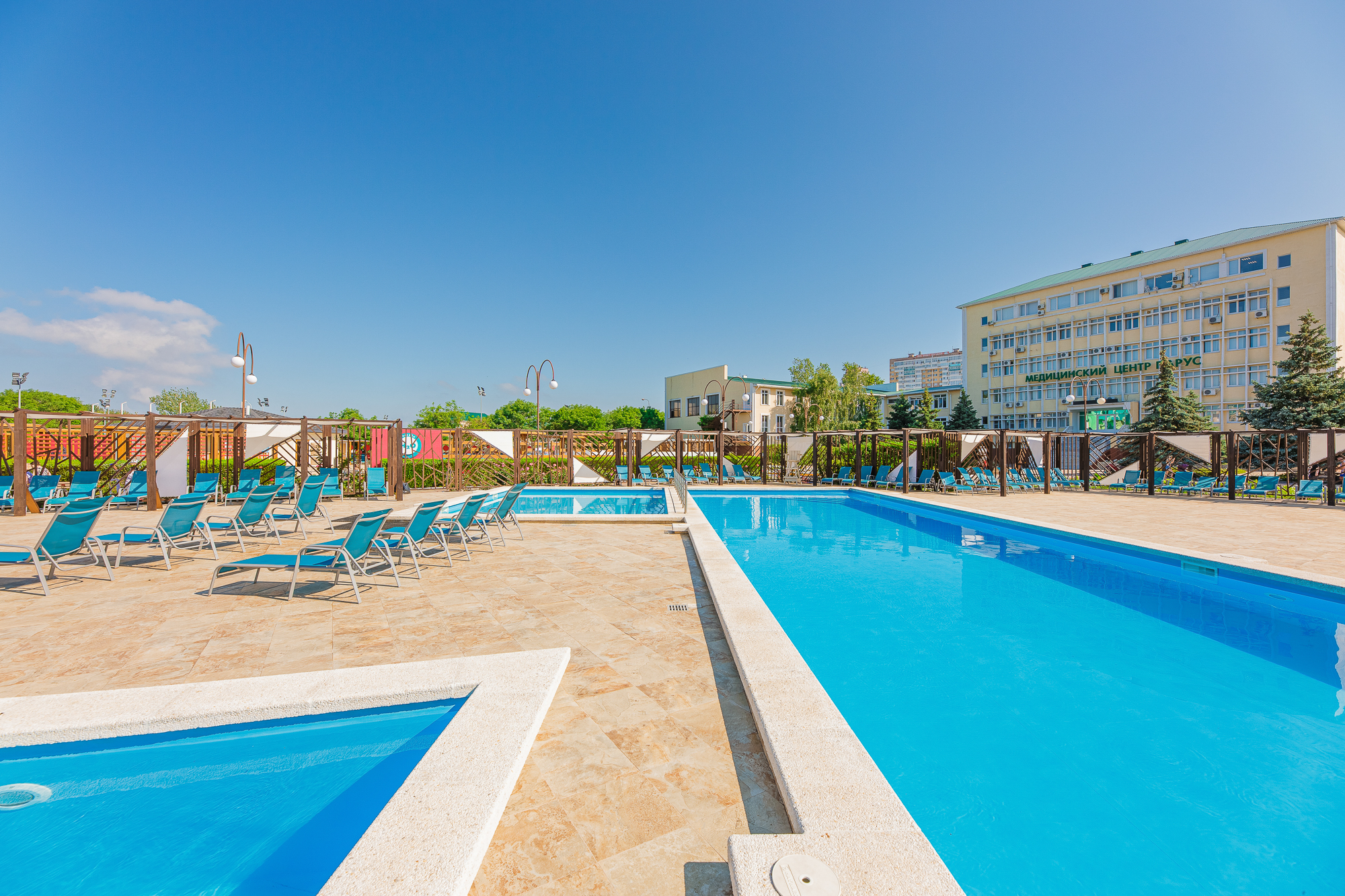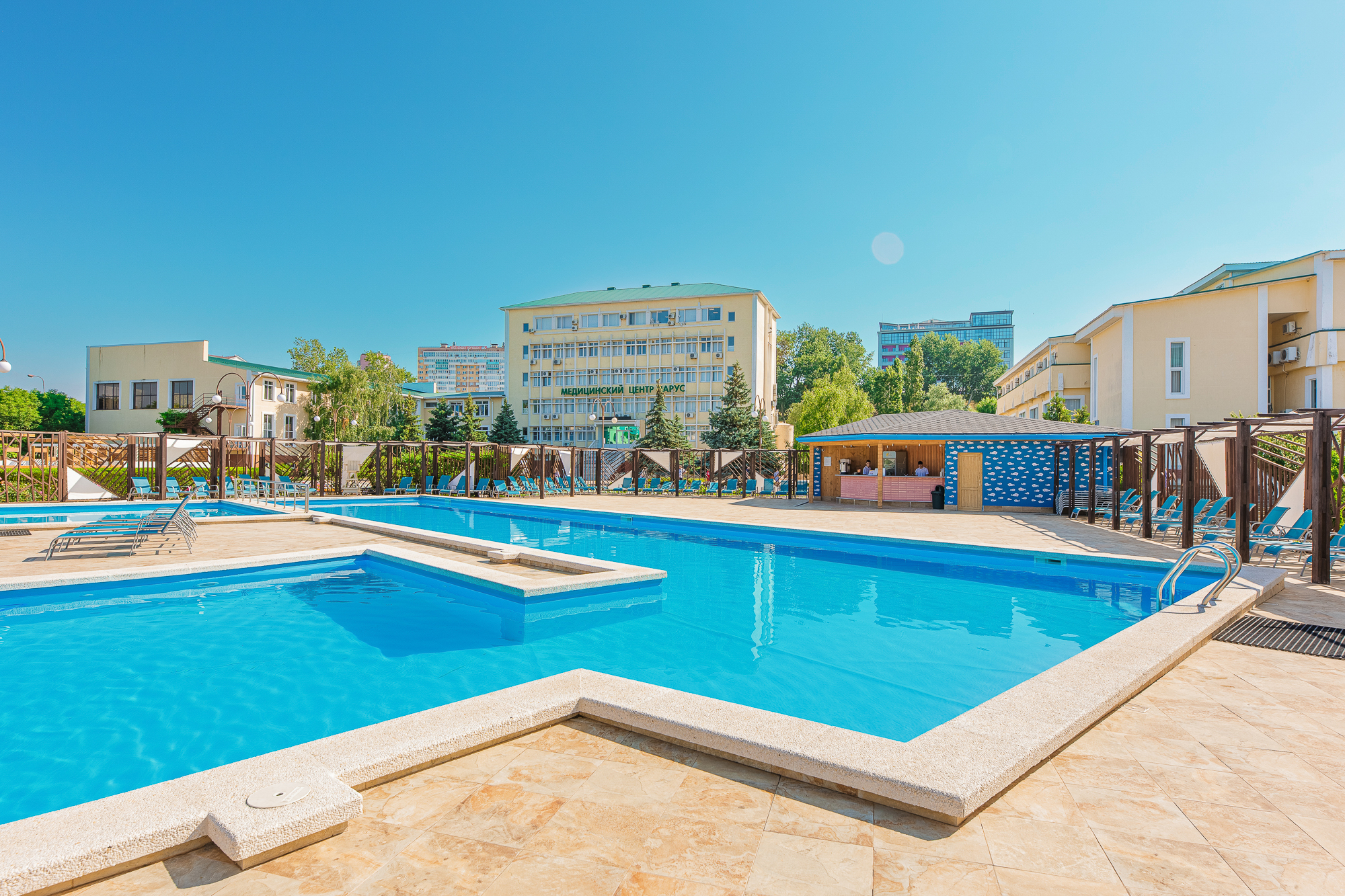 Инфраструктура для отдыха и развлечений: Бассейн, ресторан, фитнес-центр и многое другое – у нас есть всё, чтобы сделать ваш отдых насыщенным и интересным.