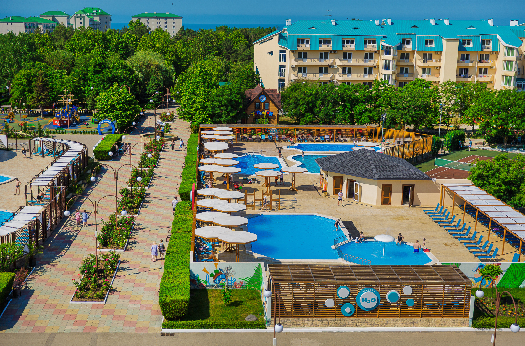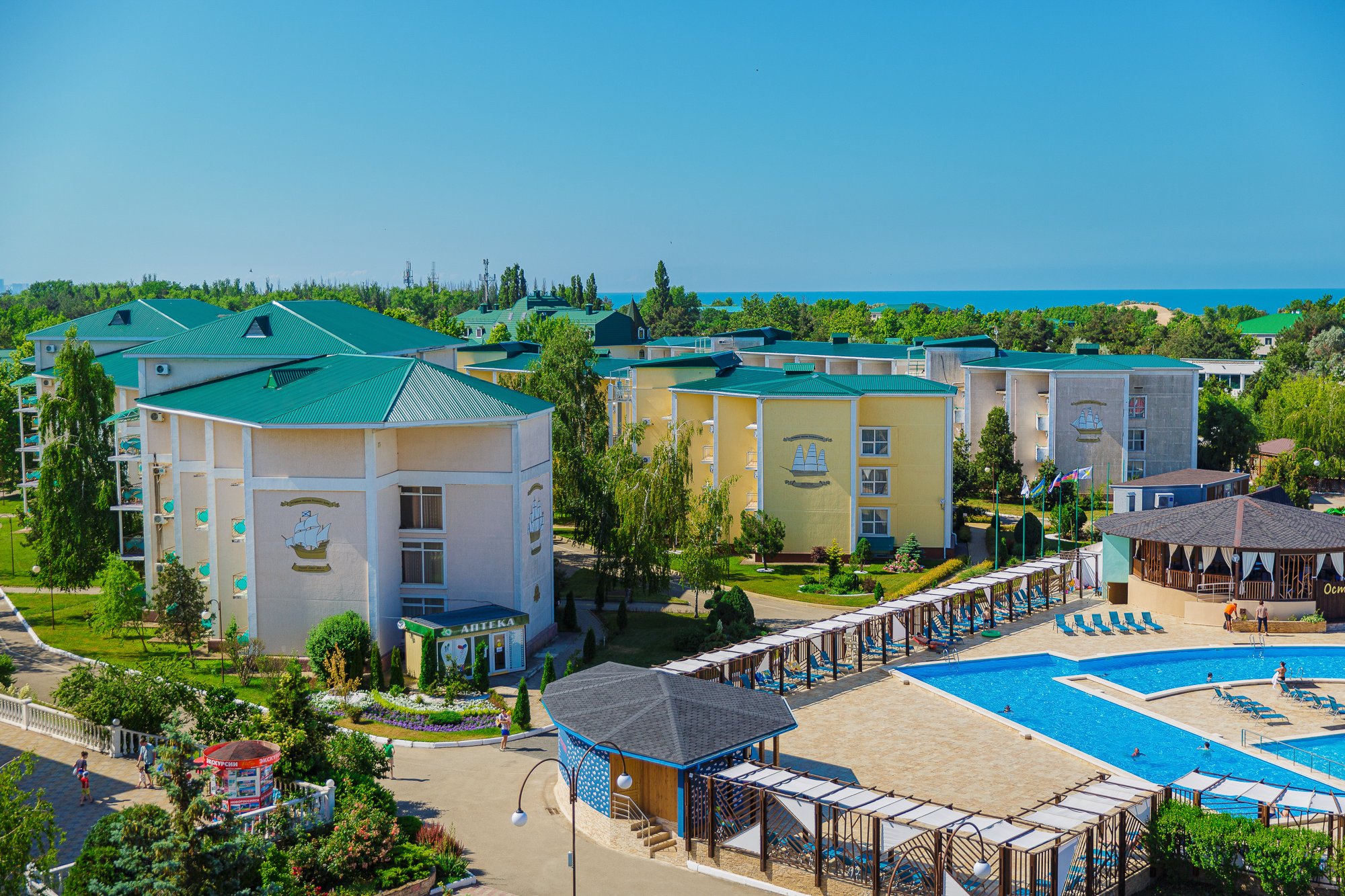 Все включено .Проживание, 3- разовое питание по системе "Шведский стол", питание по системе " All inclusive", бассейн (по сезону), спортивная площадка, детская игровая комната.