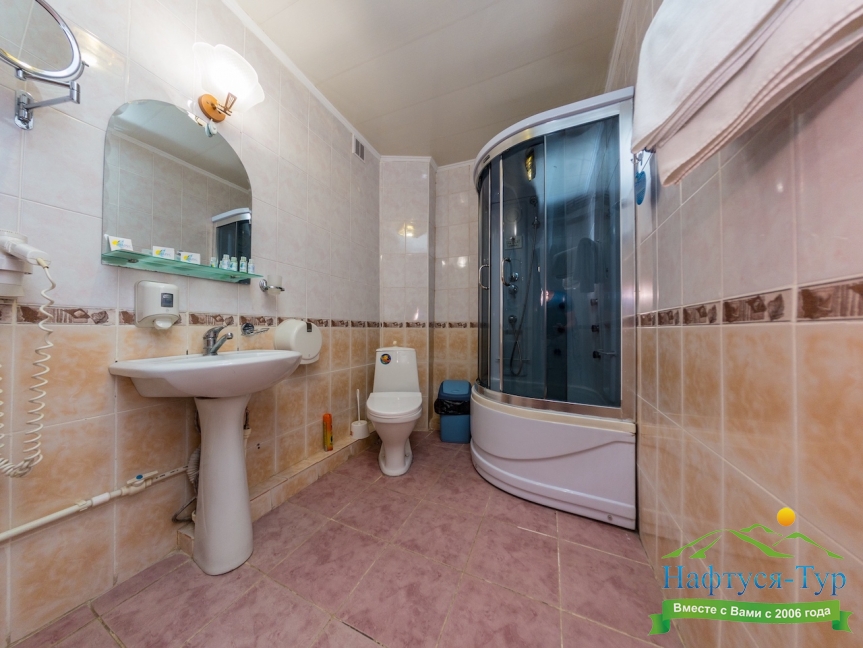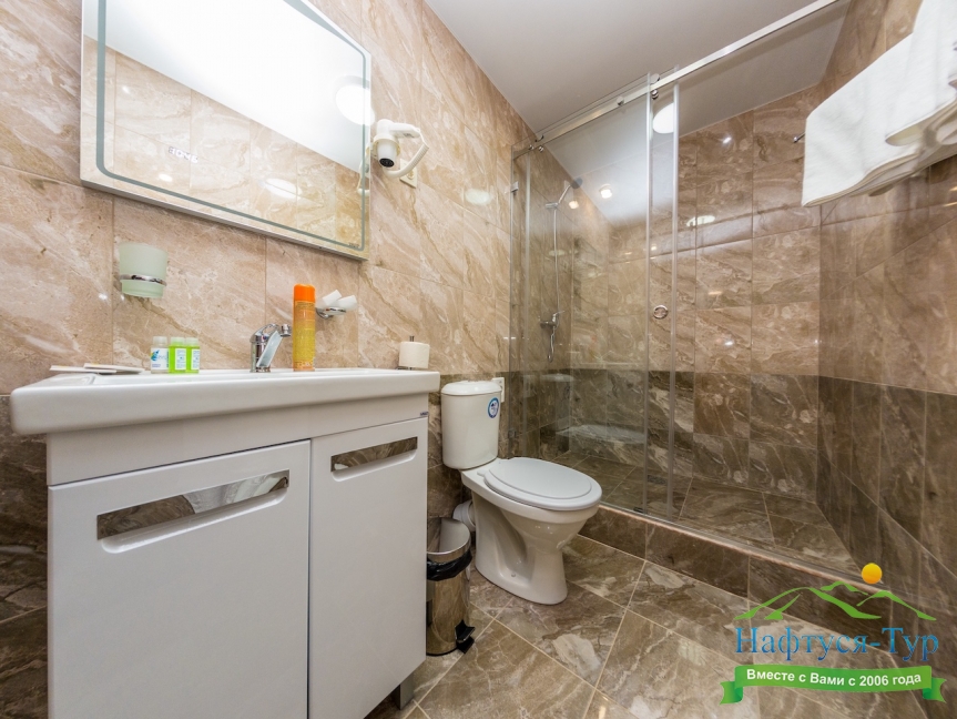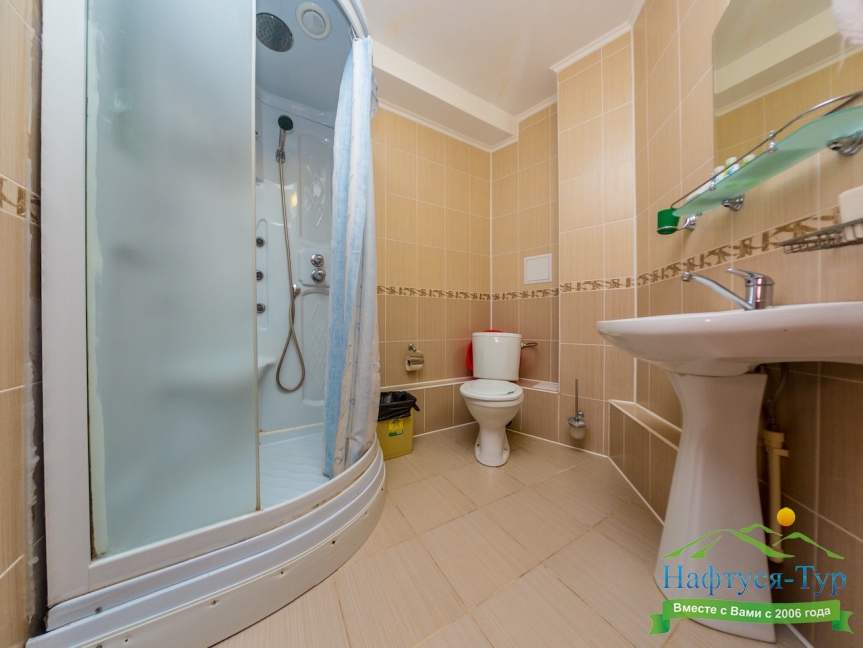 с душевой кабиной, туалетные принадлежности