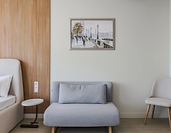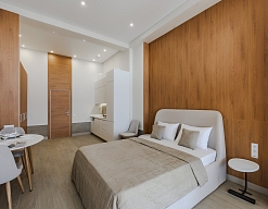 диван раскладной, зеркало, кровать двуспальная, прикроватные столики, стол, стулья, шкаф