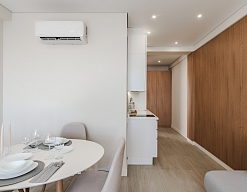 гладильная доска, кондиционер, набор посуды, плита электрическая, пляжные полотенца, сейф, стиральная машина, телевизор ЖК, утюг, чайная станция