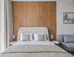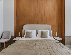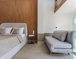 диван раскладной, зеркало, кровать двуспальная, кровать полутороспальная, прикроватные столики, стол, стулья, шкаф