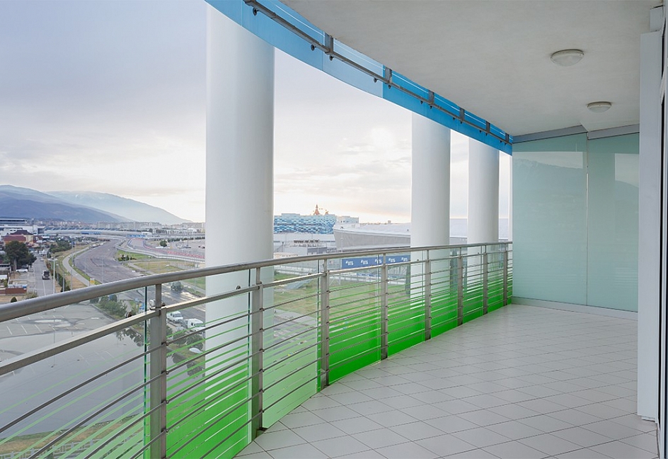 На поезде до аэропорта Адлер, далее на автобусе №135 до остановки «Главный Медиацентр».