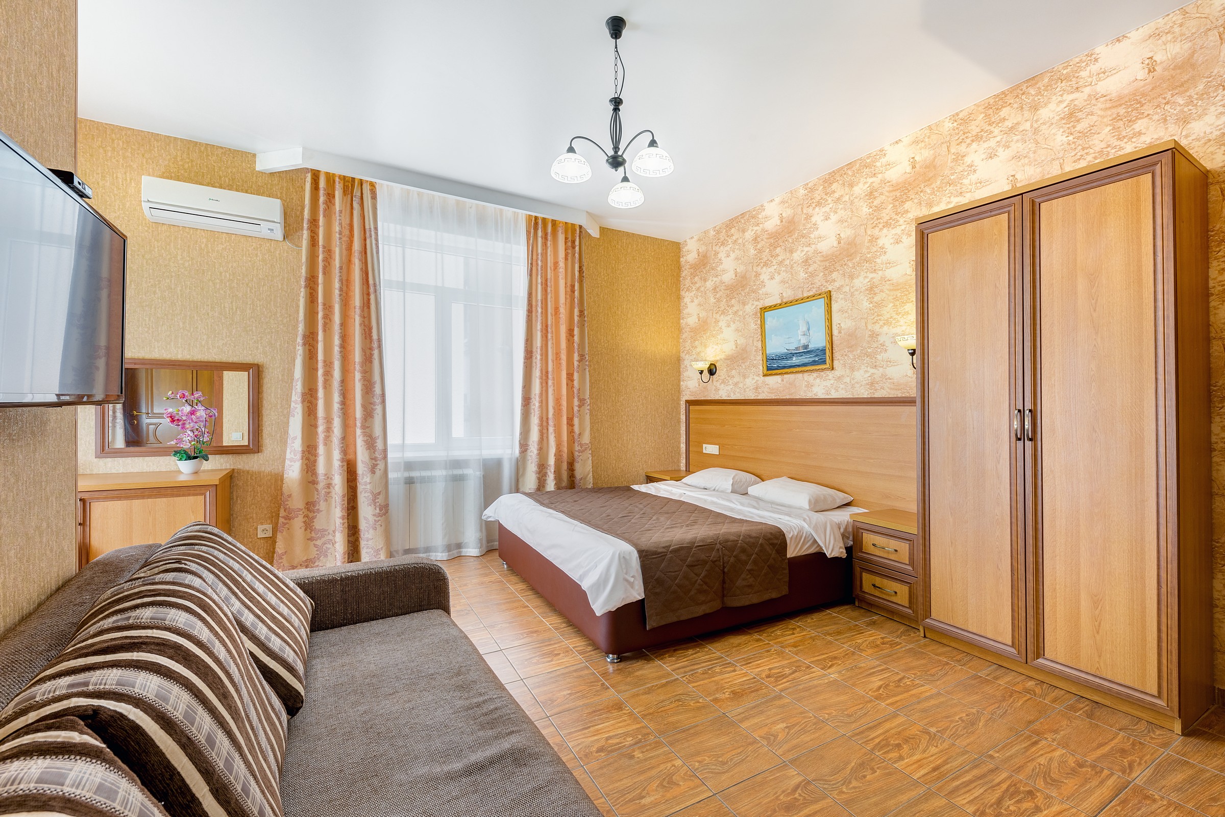 мини-холодильник, набор посуды, сплит-система, телевизор