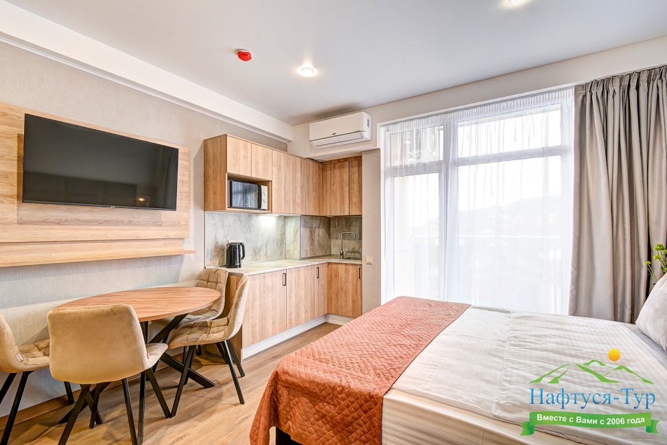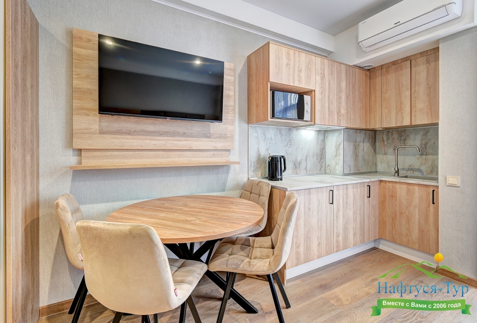 кондиционер, микроволновая печь, мини-холодильник, набор посуды, телевизор ЖК, электрочайник
